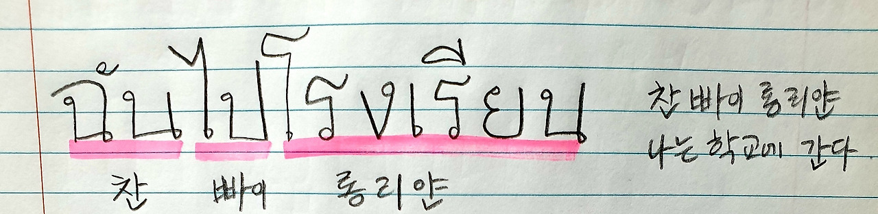 그럼 이제 빠이를 넣어서 문장 하나를 만들어 볼까?