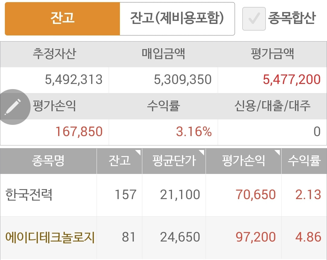 사진 1. 현물 주식. 49만 원의 수익이다. 활활 타오르는 증시에 제대로 반응은 못한 미약한 상승이다. 할 수 없다.