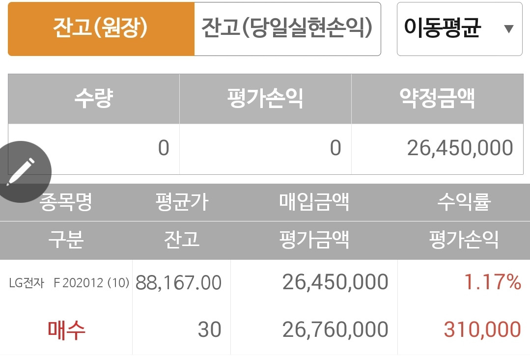 사진 2. 선물주식. 역시 수익도 빵빵 손실도 쭉쭉 그 변화가 크다. 이번엔 수익을 잘 챙겨서 돈을 불려야 하는데. 파이팅!