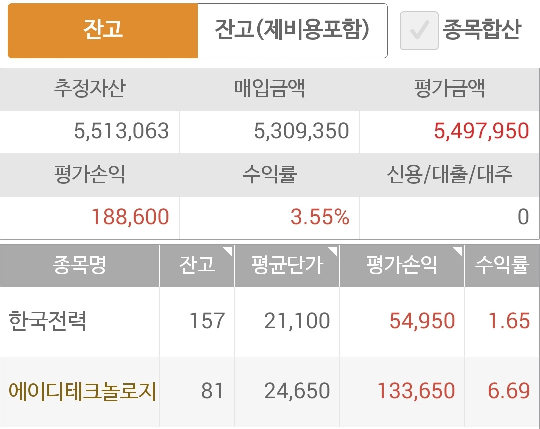 사진 1. 현물 주식. 51만 원의 수익중.