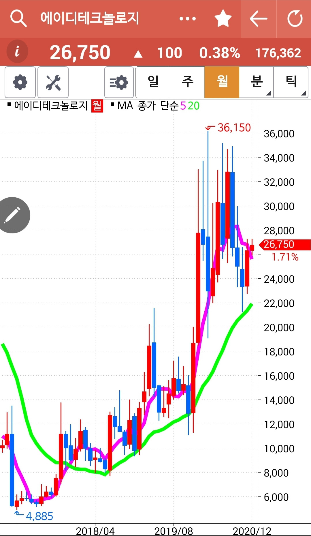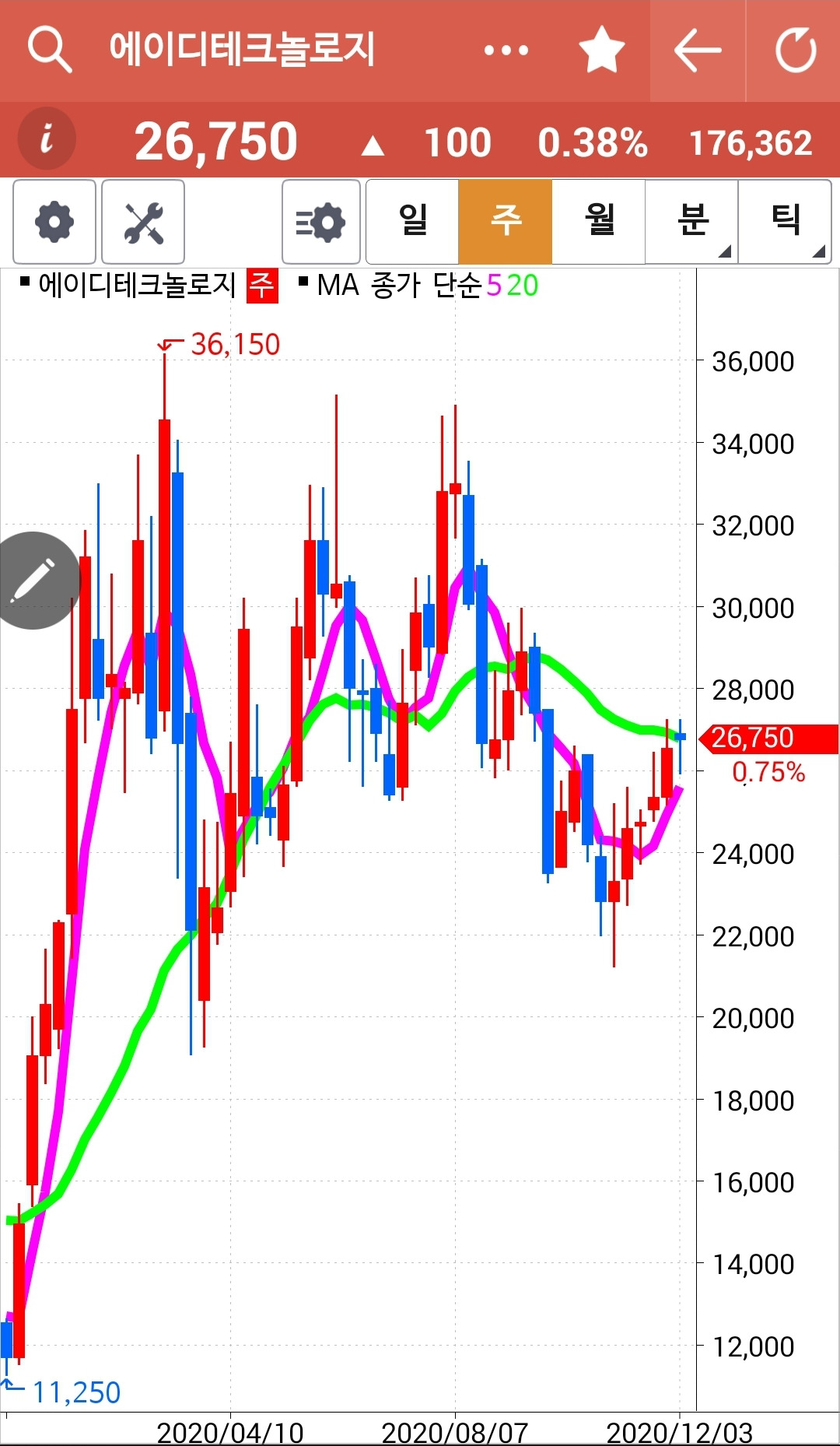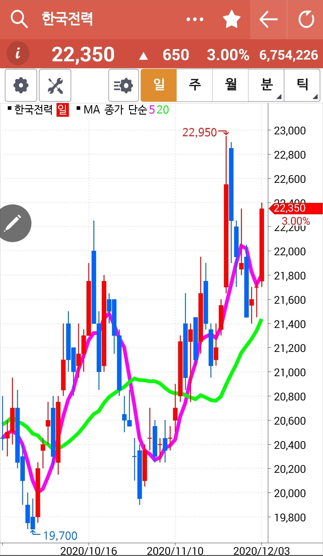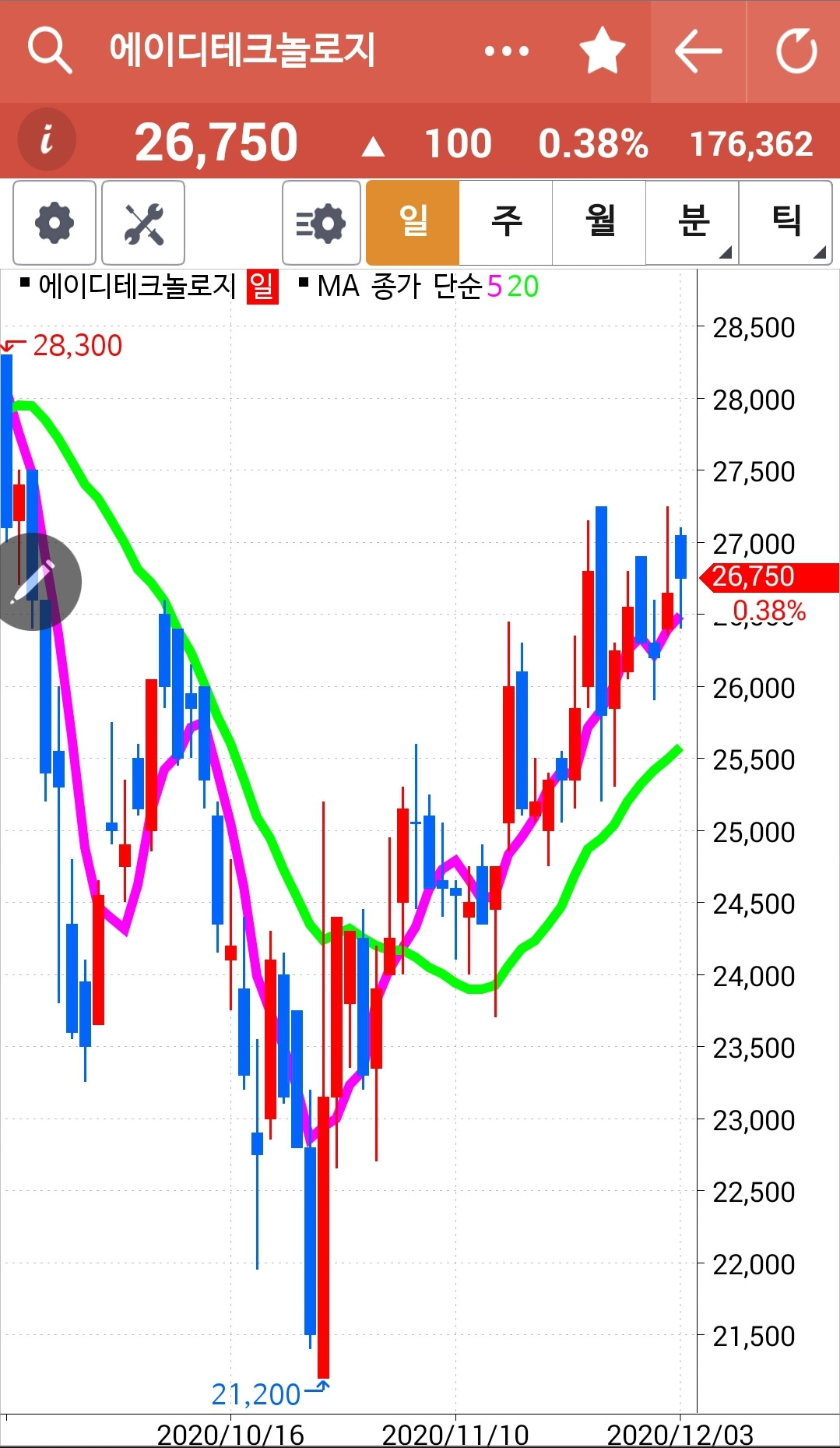 어쨌든 이제 다시 5일선이 20일선 위로 힘차게 올라온다면 따라가지 못할 이유가 없다. 파이팅!