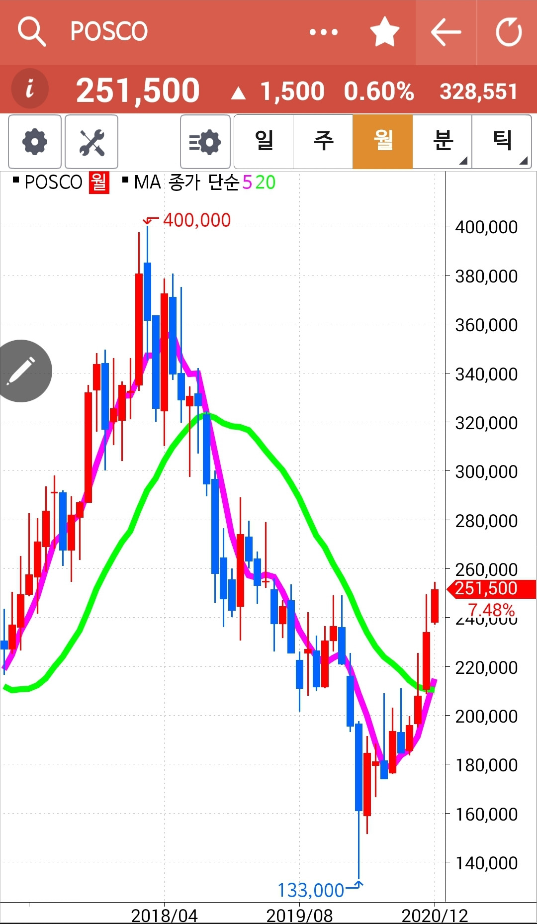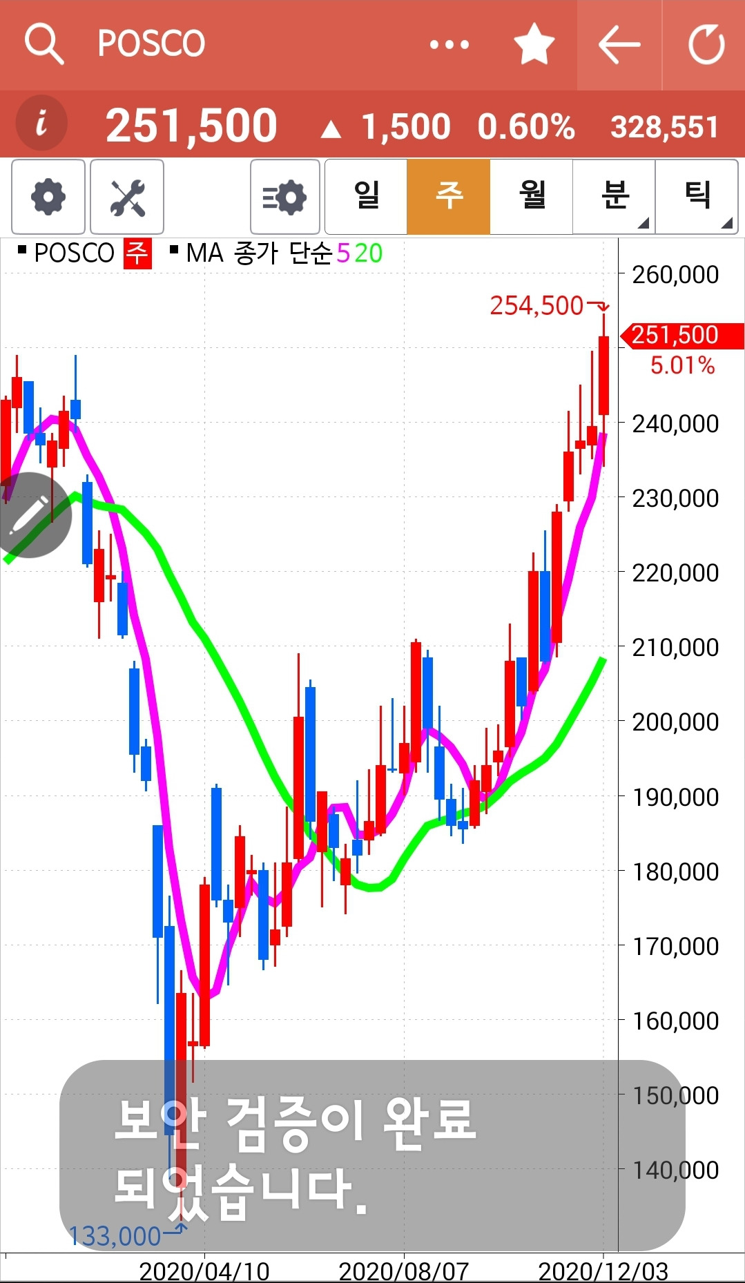 아슬아슬. 빨리 이익 실현하고픈 맘 굴뚝같지만 노노노 음봉이 나온 것도 아니요 계속 고점을 갱신하고 있는데 그럴 필요 없다. 예측은 금물. 난 5일선이 20일선 아래로 내려와야 매도한다. 그러지 않을 땐 끝까지 함께 간다. 파이팅!