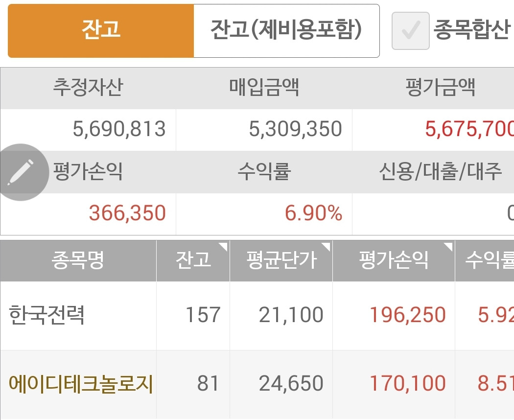 사진 3. 선물주식 잔고. 500만 원 투자인데 손실 만회하고 57만 원의 수익중. 그러나 요것이 실제 수익은 또 아니다. 난 전에 150만 원만 남겼기에 350만 원을 새로 넣어 시작한 것이다. 그러므로 나의 실제 수익이 되려면 350만 원의 수익을 일단 내야 한다. 파이팅!