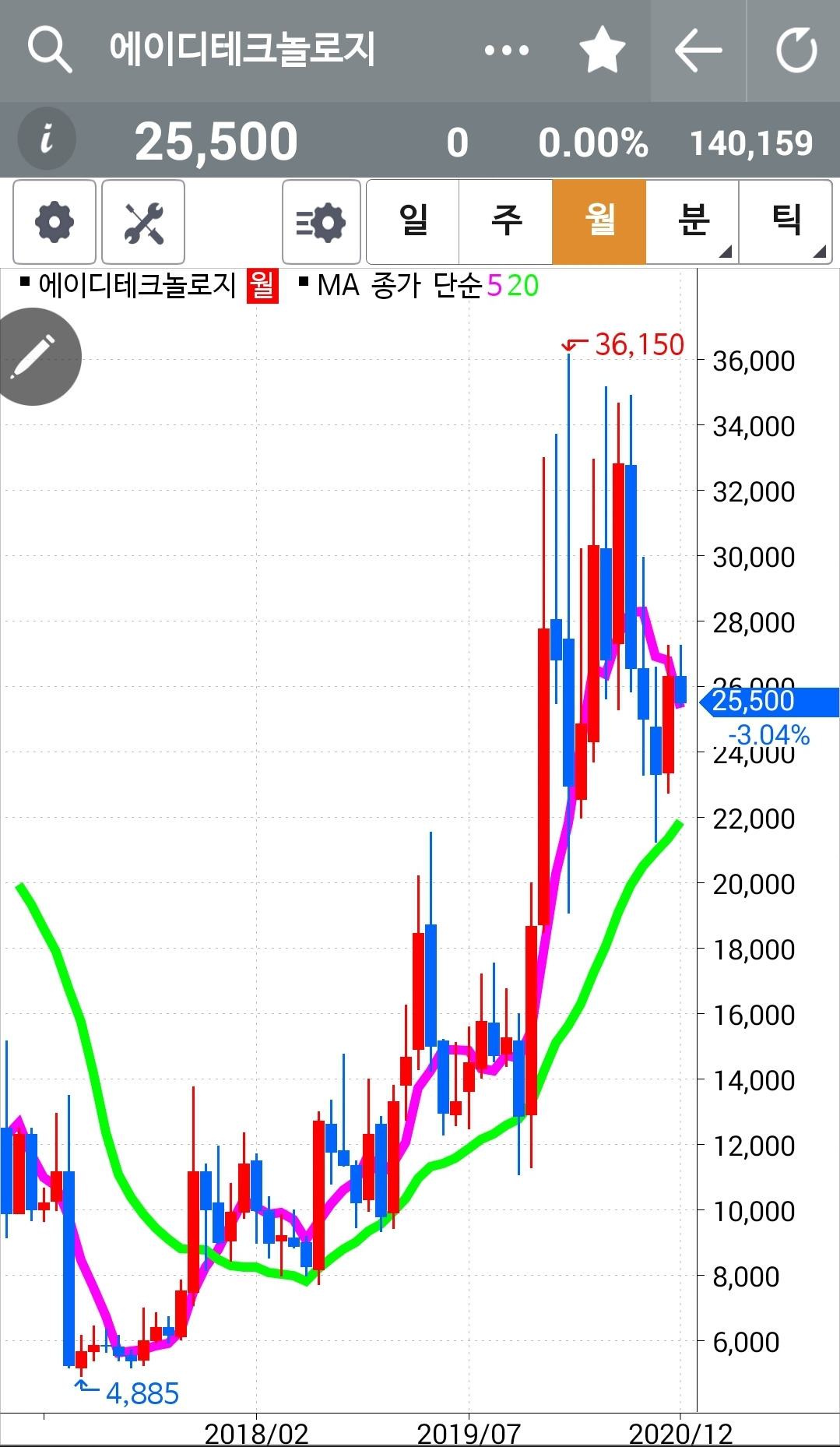 에이디테크놀로지. 처음으로 20일선을 주가가 건드린 것 같다. 그리고도 재빨리 회복 못하고 그 근처에서 알짱거리고 있다. 5일선은 이미 꺾였다. 여차하면 나오게 될 수도 있겠다. 난 아무것도 몰라요 5일선이 20일선 아래로 내려가면 매도할 뿐야요~ 그래. 그건 꼭 지켜야 해. 파이팅!