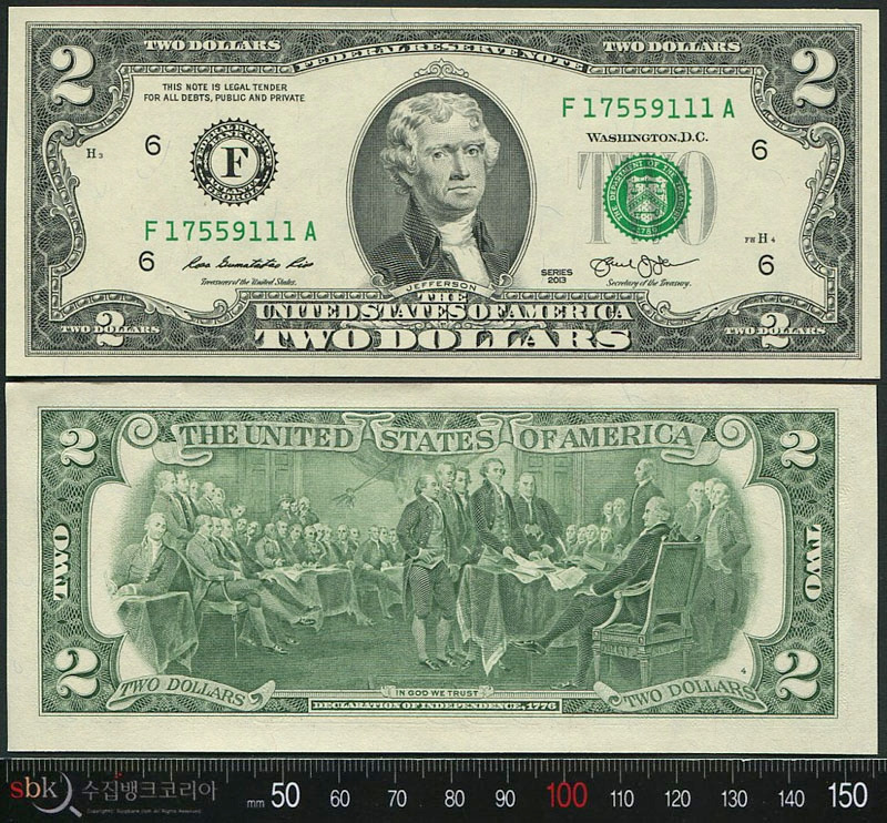 우리가 행운의 돈이라고 좋아하는 미국 2 달러 지폐 속 초상화가 바로바로 제퍼슨이다. 왜 2달러가 행운의 상징이 되었을까? 금광을 찾아 떠난 사람들이 유난히 숫자 2를 좋아했기 때문이라고 도 하고 (하나는 너무 외로우니까~) 풍랑을 만나 전복된 배안에 살아남은 단 한 명이 2달러 한 장을 갖고 있었기 때문이라고 도 하고 그레이스 켈리가 프랭크 시나트라에게 2달러를 선물로 받은 후 모나코 왕국의 왕비가 되었기 때문이라고 도 한다. (정보출처: 아하경제신문)