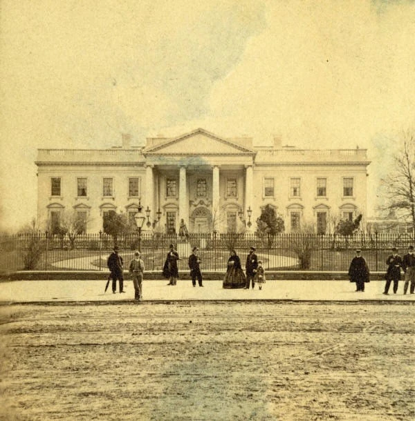 1865년의 백악관 모습이다. 1대 대통령 워싱턴이 1791년 부지를 선정하고 공사를 시작하지만 8년 뒤에나 완공이 되어 입주는 2대 대통령 존 애덤스 때야 한다. 프랑스 샤토 성을 흉내 낸 멋진 외관 그러나 속은 엉망. 건축에도 조예가 깊었던 3대 대통령 제퍼슨 때 두 개의 작은 윙이 증축되며 제대로 된 백악관이 된다.