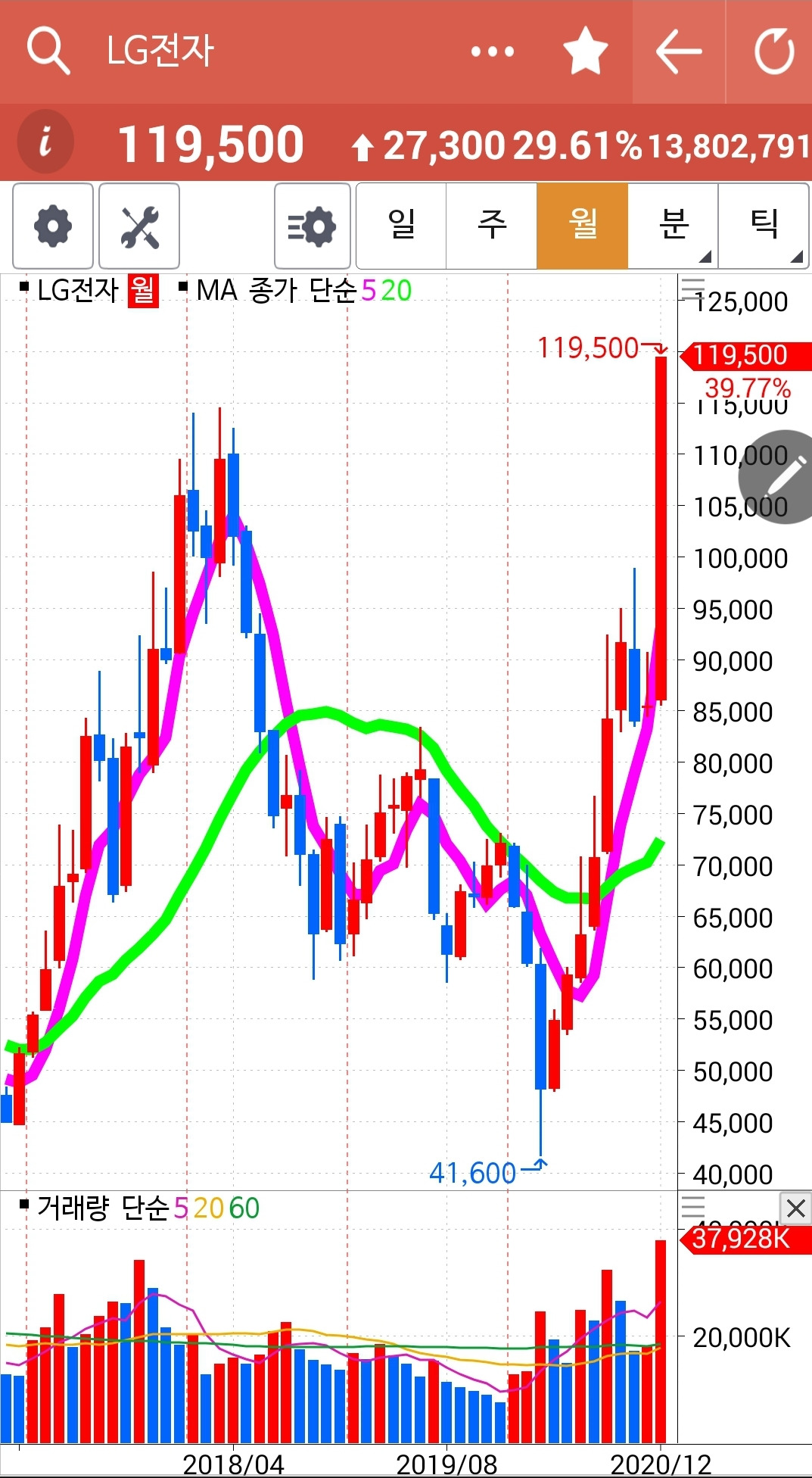 엄마가 팔이 부러져 병원에 입원하면서 난 모든 나의 일상을 접었다. 그래서 매일 밤 올리던 남편몰래주식투자도 멈추게 되었다. 이제 퇴원을 앞두고 갑자기 심적으로 시간적으로 여유가 생긴 나는 휴게실로 가 오랜만에 주식을 켜고 차트를 보았다. 앗. LG전자가 빵! 그야말로 멋지게 솟아오르고 있었다. 20일선에서 빵! 발돋움을 하고. 아, 이런 건 무조건 따라가야 하는데. 내가 지금 병원에서! 시간도 맘대로 낼 수 없는데! 하면서 망설 망설이는데 주가는 폴짝폴짝 뛰고 내 손가락이 먼저 달려 나간다. 매수! 무조건 팔자 가격에 매수다. 현물 주식도 사고 선물주식도 사고 바쁘다 바빠!