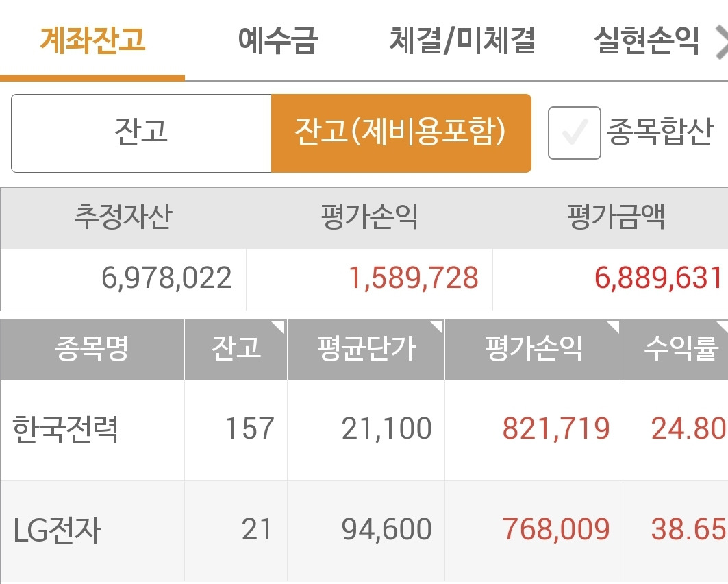 사진 1. 현물 주식. 500만 원 총투자액인데 697만 원이니 197만 원의 수익이다. 잘했다. 하하