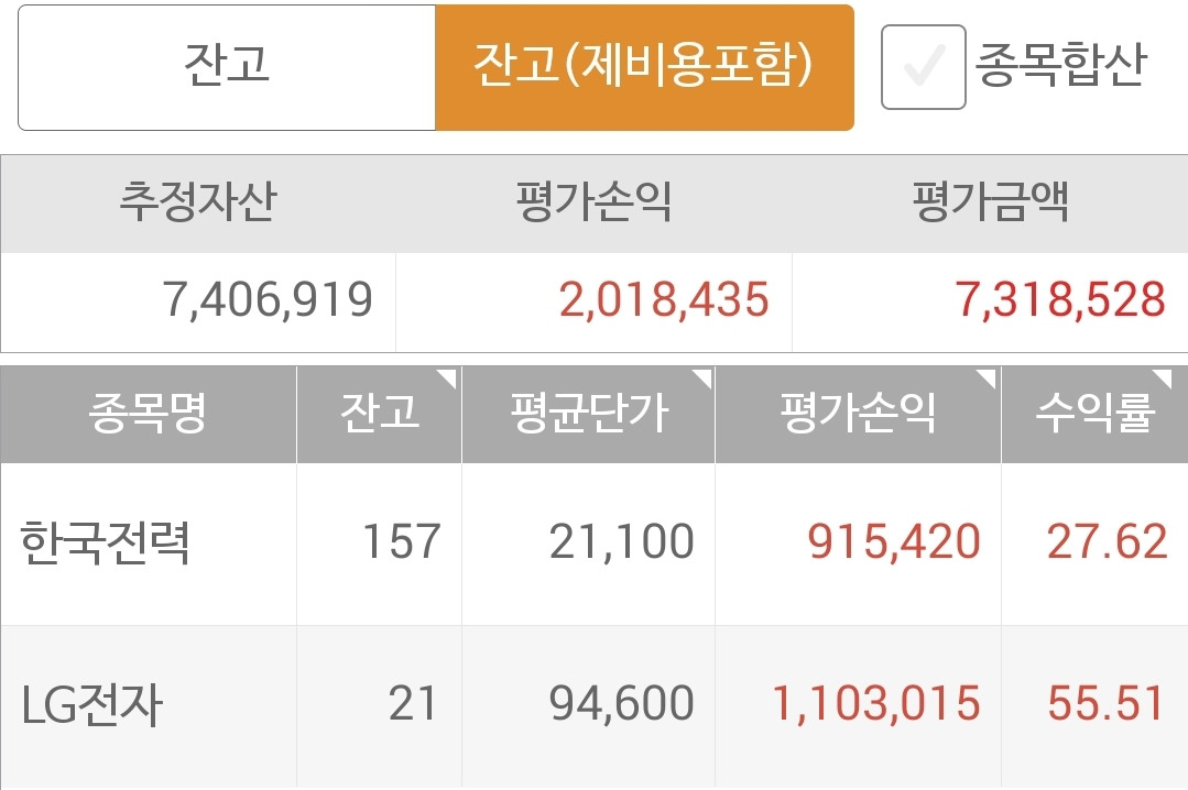 사진 1. 현물 주식. 슬쩍슬쩍 종가만 확인했을 때 여전히 5일선이 20일선 위에 있어 그대로 가지고 있는 것들이다. 그래도 500만 원 투자금인데 240만 원 정도의 수익을 냈으니 잘했다. 요걸 내가 5000만 원 투자했다면 2400만 원의 수익을 내는 건데. 와우. 푸하하하 별 생각을 다해요~