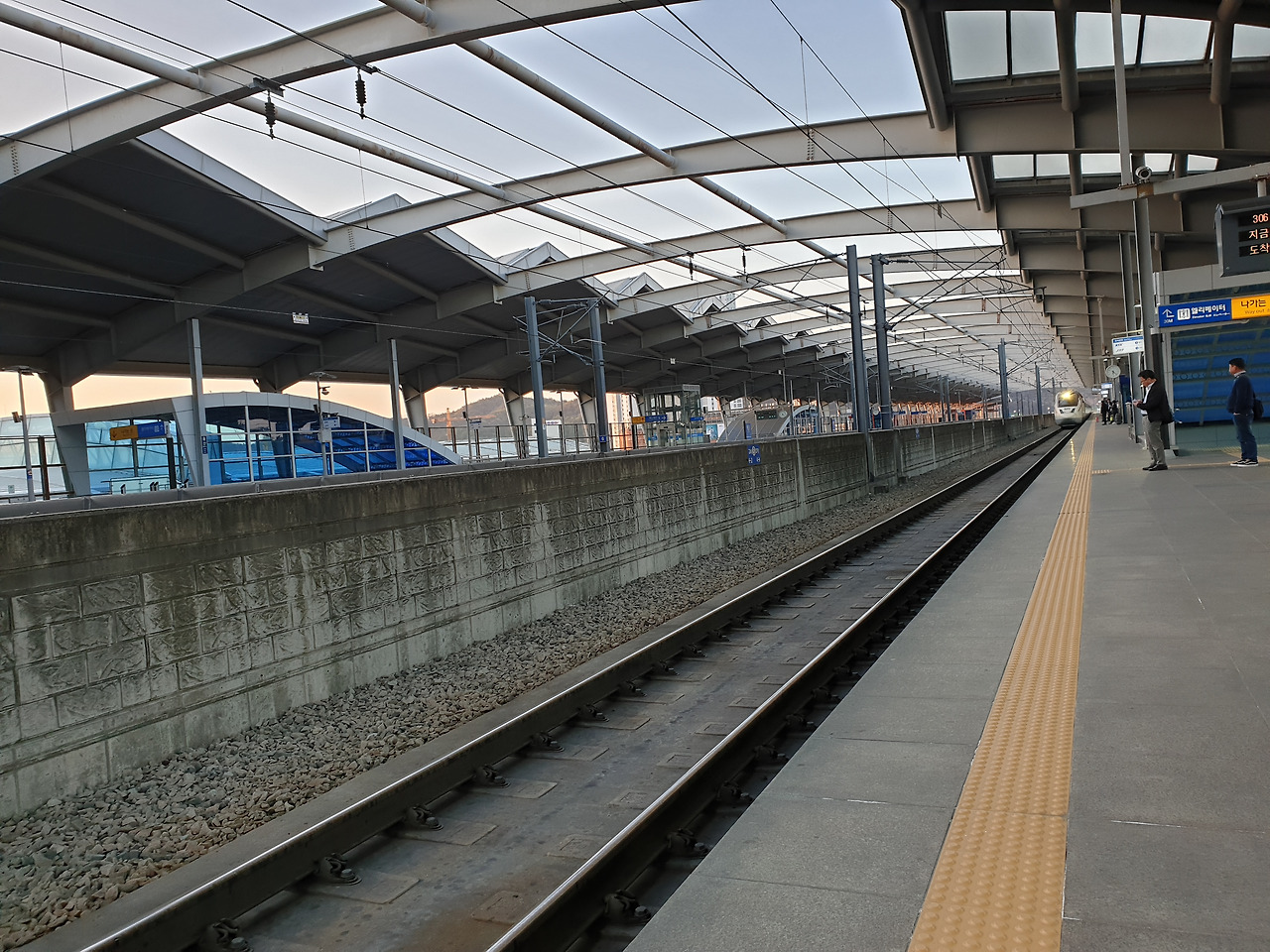 열차와 열차 사이에 둥글고 커다랗게 자리 잡고 있는 화장실. 오호 강남행이라? 하하 그렇게 나를 놀라게 했던 화장실. 정신 차리고 보니 모든 화장실이 이렇게 커다란 게 아니고 장애인용이었던 것이다. 그래도 자리가 가까울 땐 이용하게 된다.