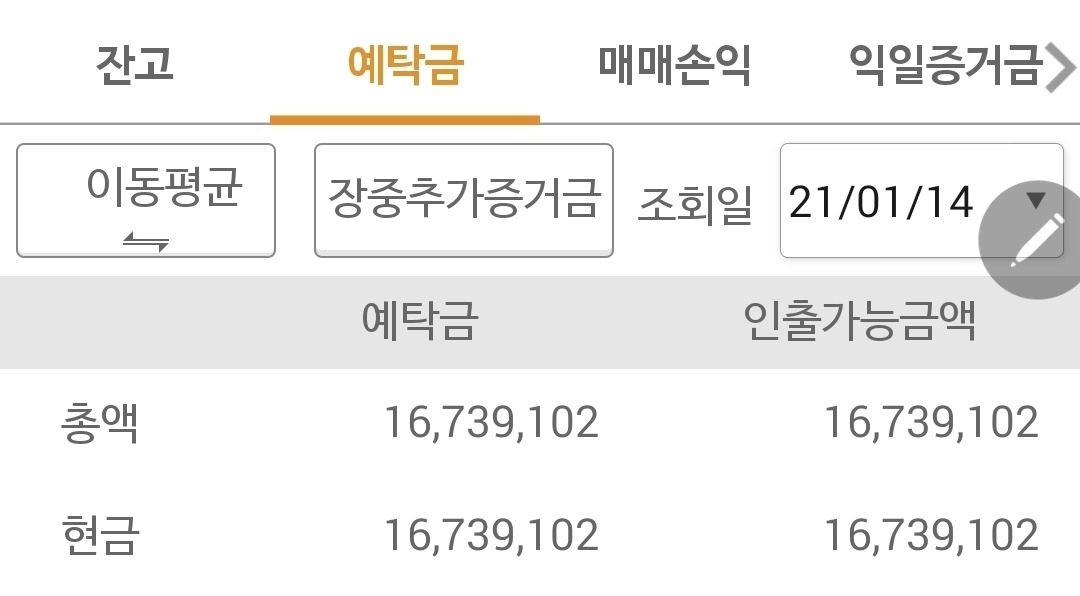 사진 3. 선물주식. 850만 원의 투자원금에서 빵빵하게 불린 채 꽉 움켜쥐고 있는 나의 현금. 음하하하