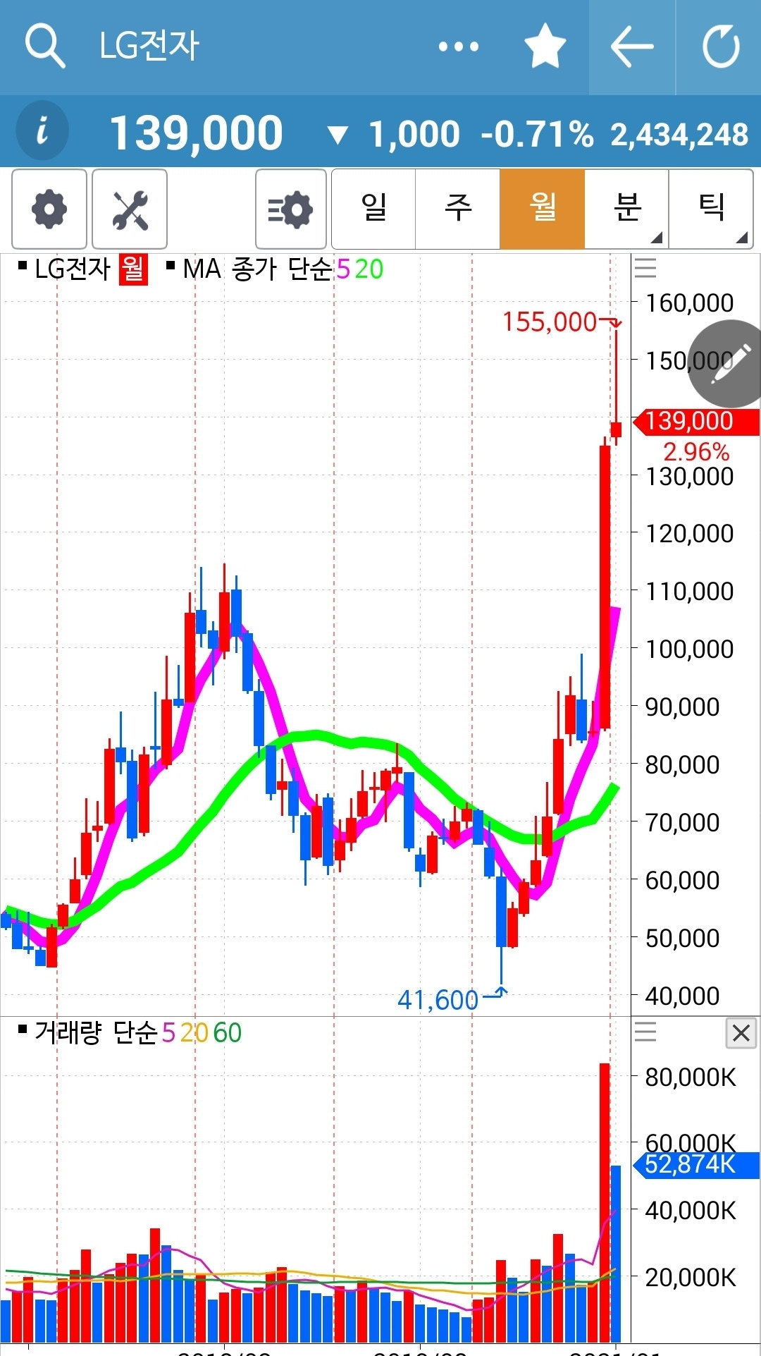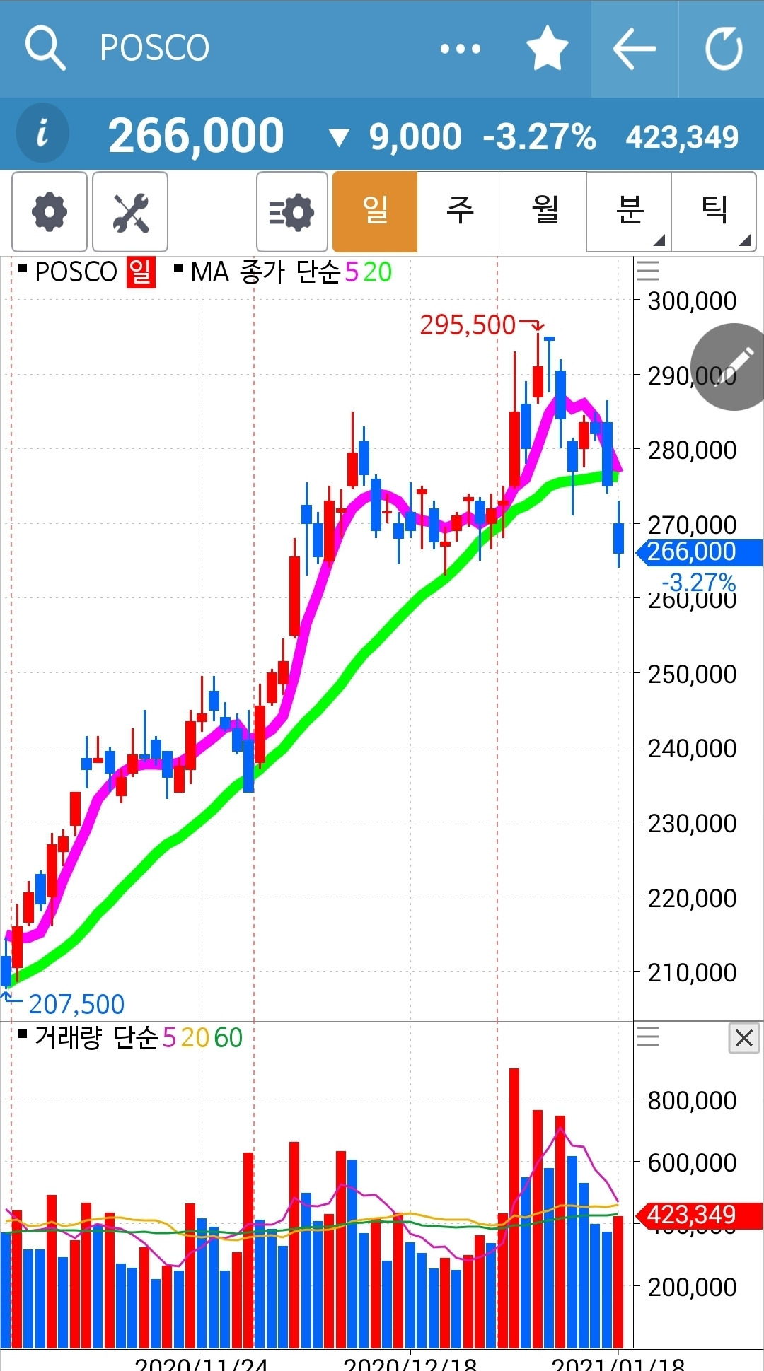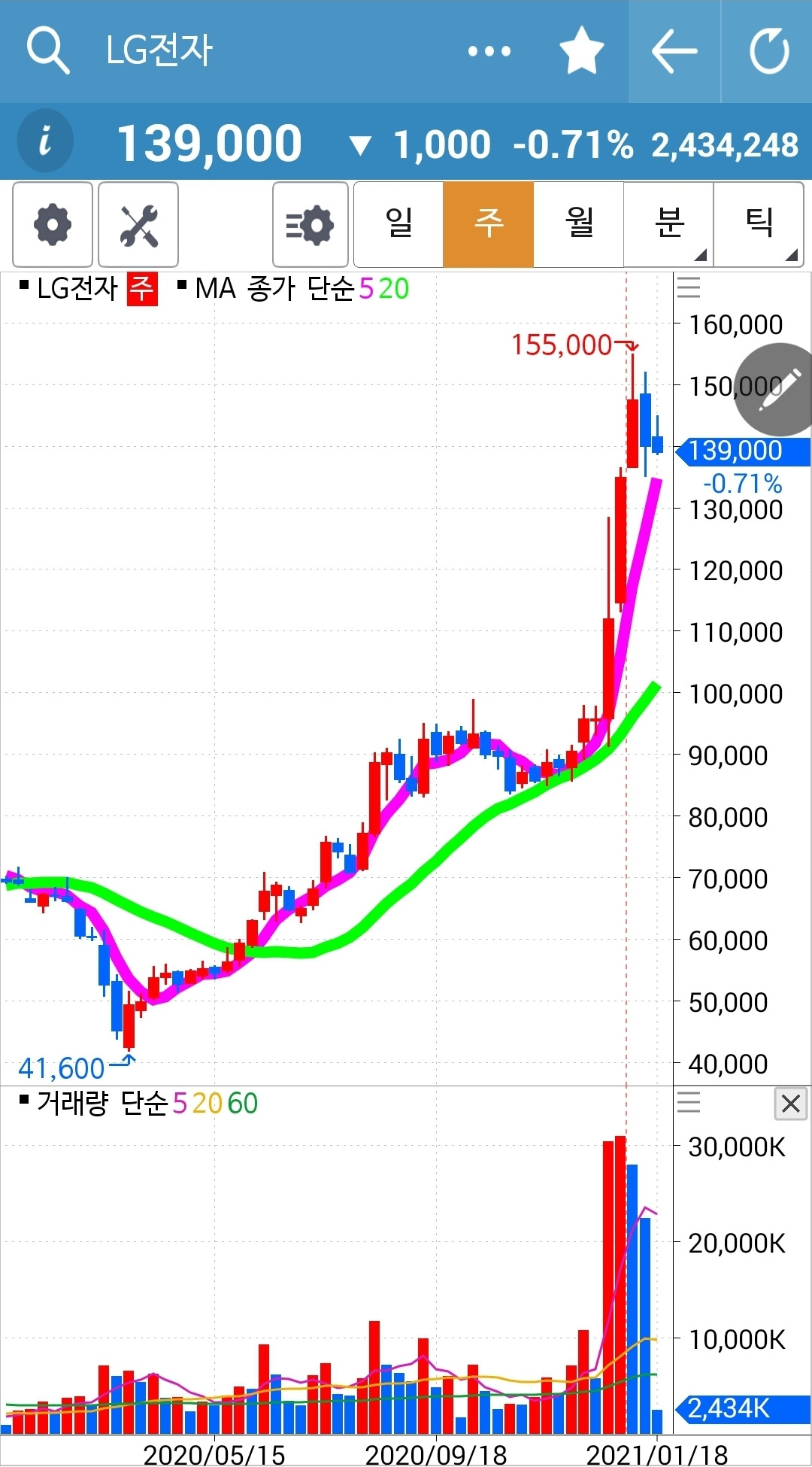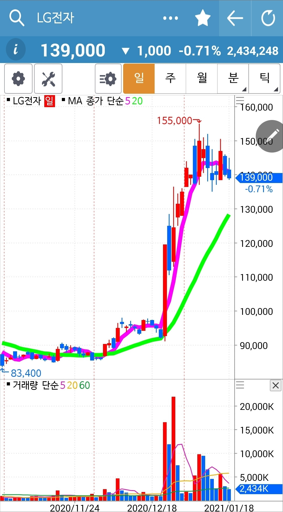 5일선과 20일선이 닿을 듯 말 듯. 크게 해서 열심히 들여다봤지만 아직 아니다. 그래서 정리하지 않았다. 내일 두 눈을 부릅뜨고 열심히 들여다봐야지. 파이팅!