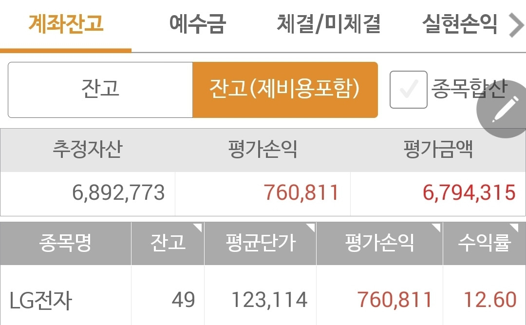 사진 1. 현물 주식. 700만 원 넘던 수익이 그 아래로 뚝 떨어졌다.