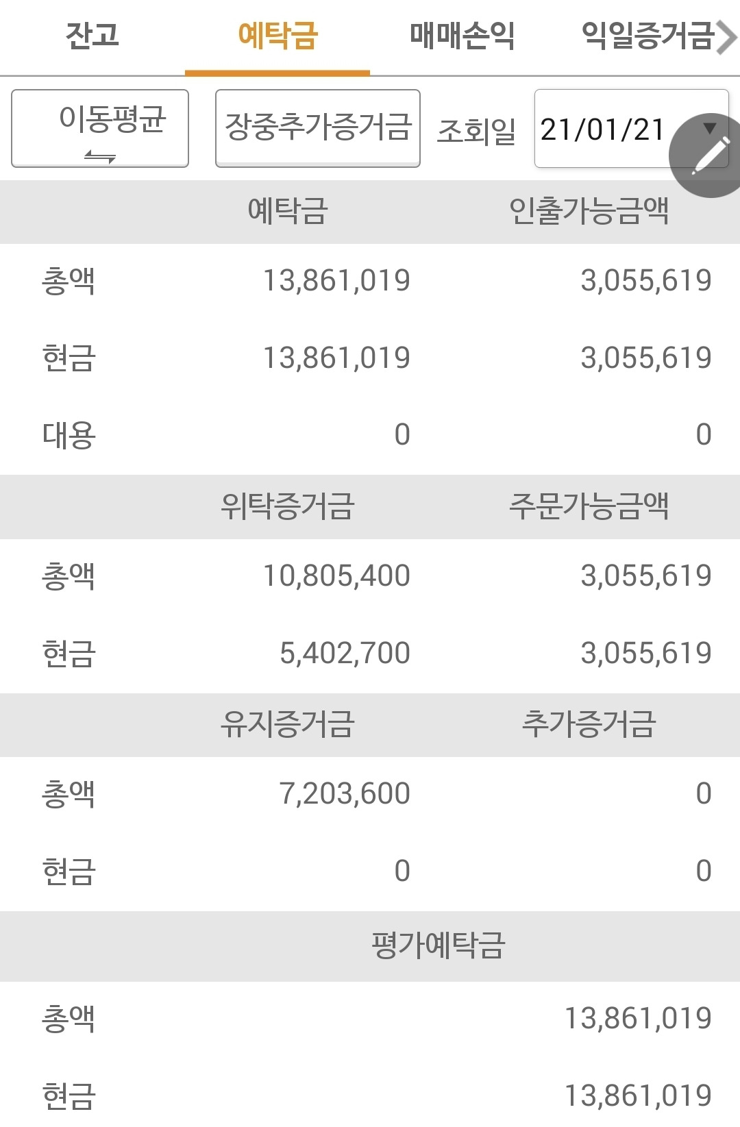 사진 3. 선물주식 예탁금. 1386만 원. 없을 수도 있었던 300여 만원의 손실이 많이 아쉽다.