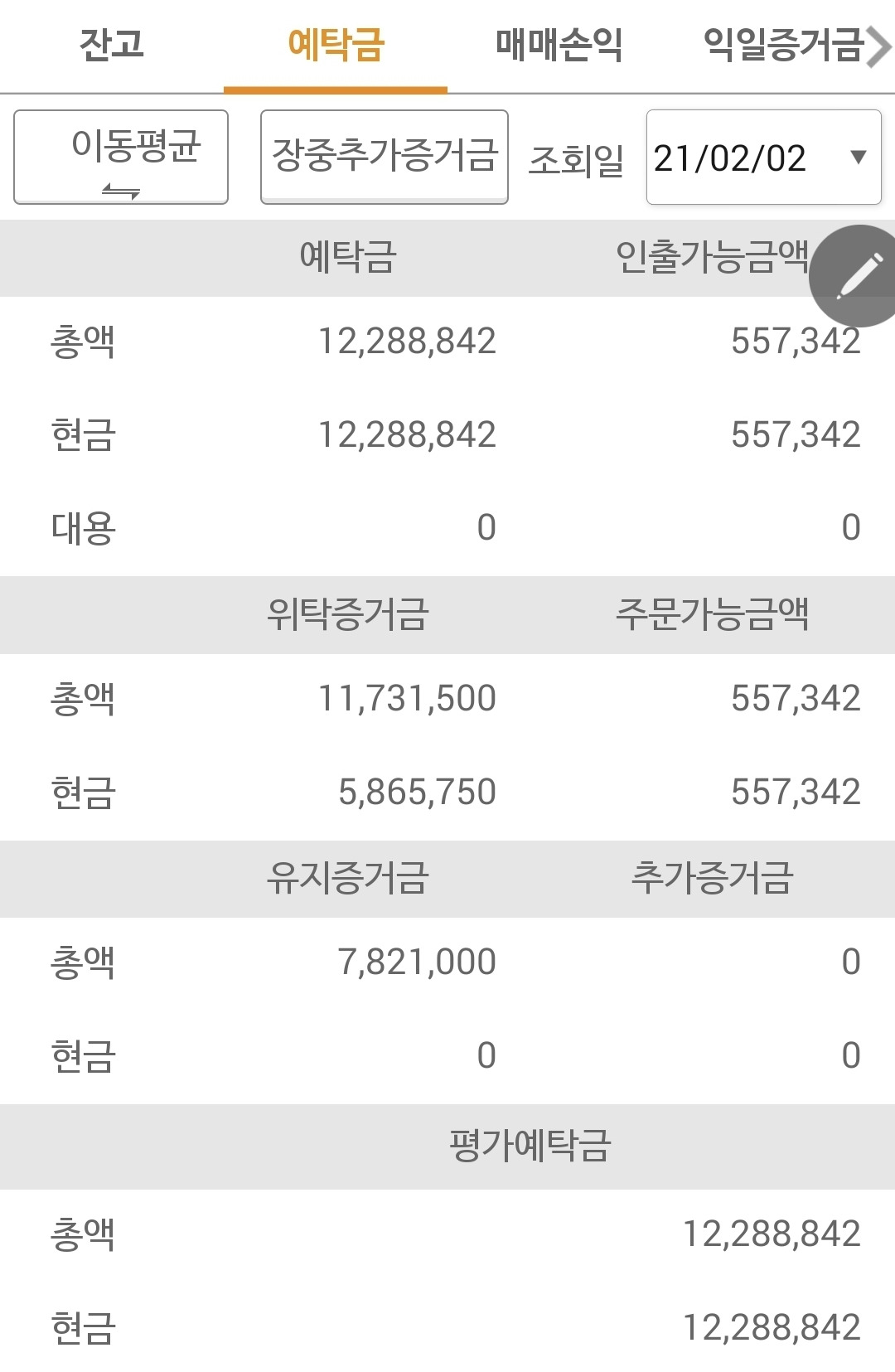 사진 3. 선물 주식 예수금. 변함없이 똑같다.