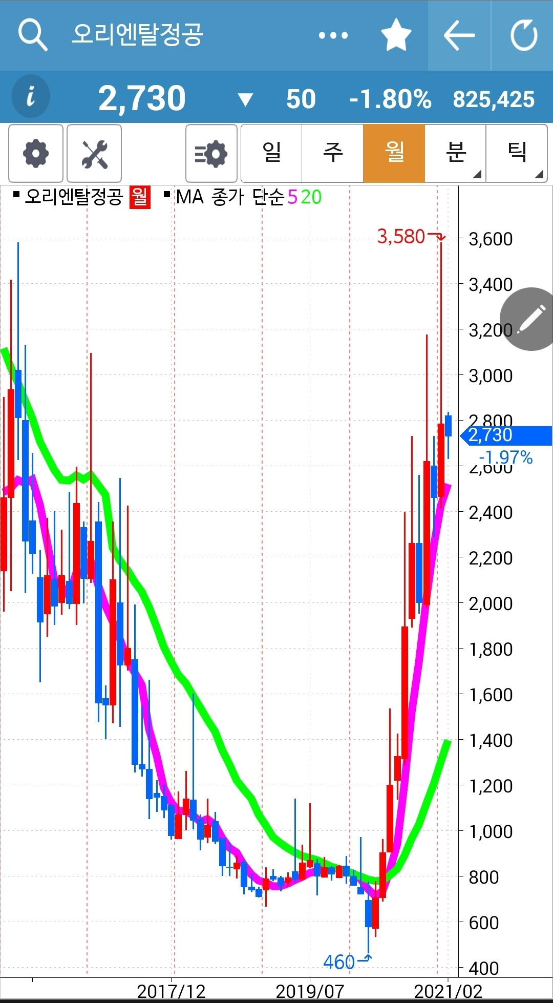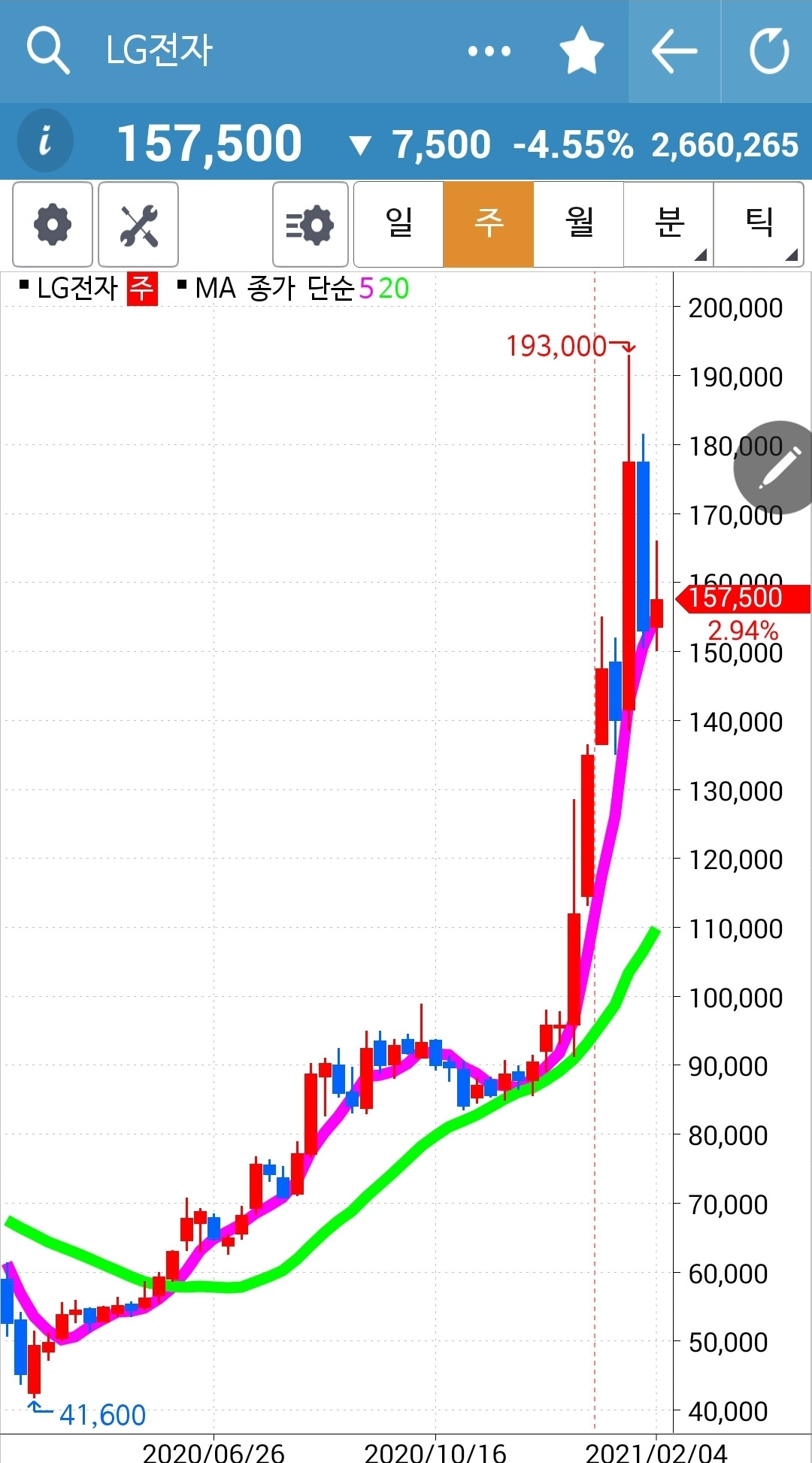 가파르긴 하지만 주봉도 올라가고 있고 월봉도 올라가고 있다. 강할 수밖에 없다며 희망을 갖자. 파이팅!