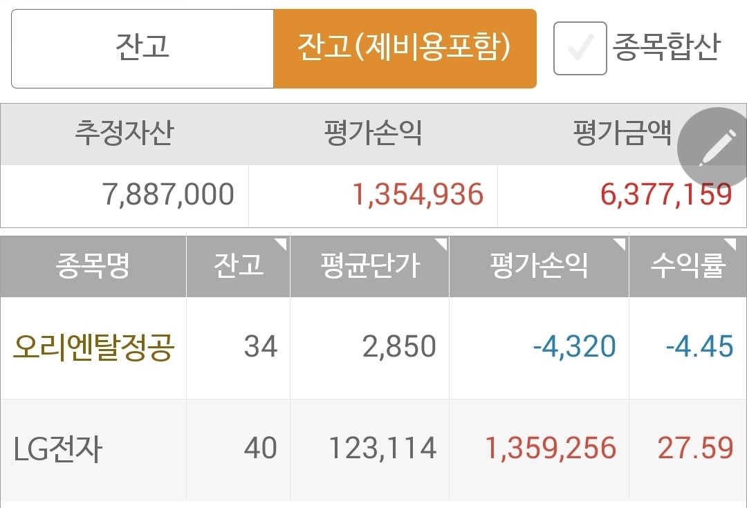 사진 1. 현물 주식. LG전자가 폭싹 내려가 다시 800만 원대 아래로 내려갔다.