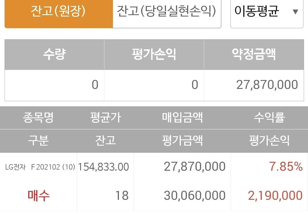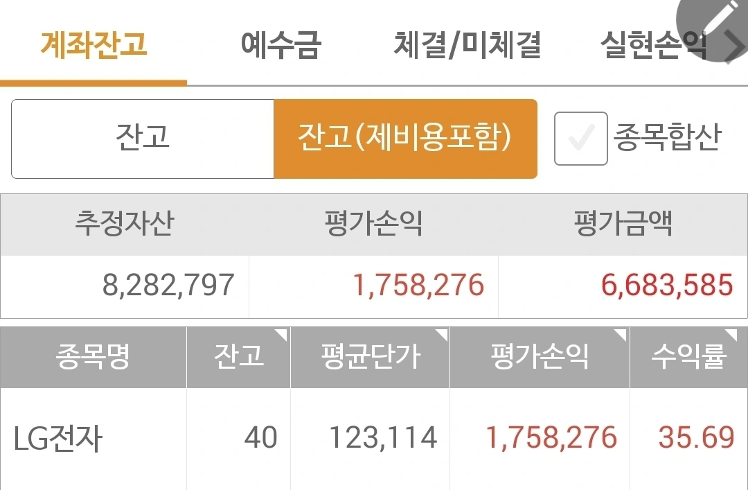 사진 2. 선물 주식. LG전자로 빵빵하게 채워져 있다.