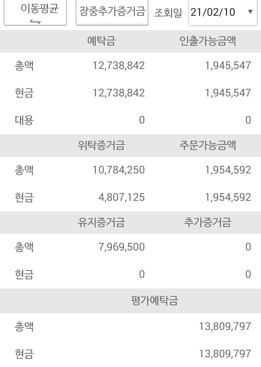 사진 3. 선물 주식 예탁금. 내가 수익인지 손실인지를 알게 해주는 예탁금 현황. 평가 예탁금이 1,300만 원대로 올라섰다. 다행이다. 최고 수익이었던 1,600만 원대가 아른거리지만 잘 따라가고 있다. 그 원칙만 잘 지키자. 그런데 오늘 살짝 어긴 듯싶으나 그러나 모두 위로 향할 때는 그리고 아주 살짝 어긋났을 때는 예외를 두기로 하자구나. 그래. 파이팅!