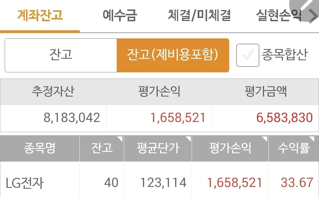 사진 1. 현물 주식. 818만 원 추정자산이다. 500만 원 투자에 잘했다.