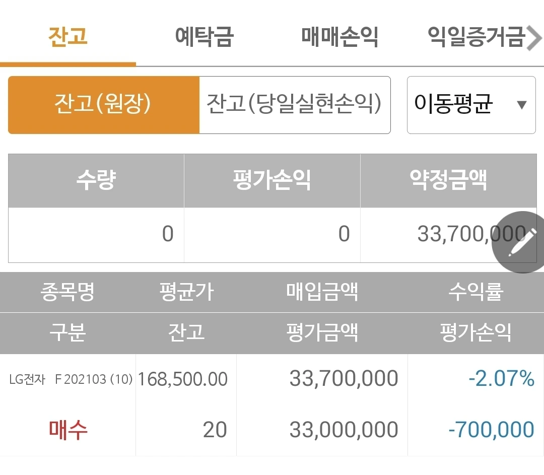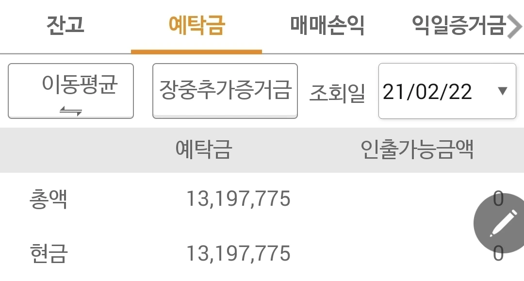 사진 3. 선물 주식 예탁금. 1600 만원 최고점일 때가 눈에 아른거린다.