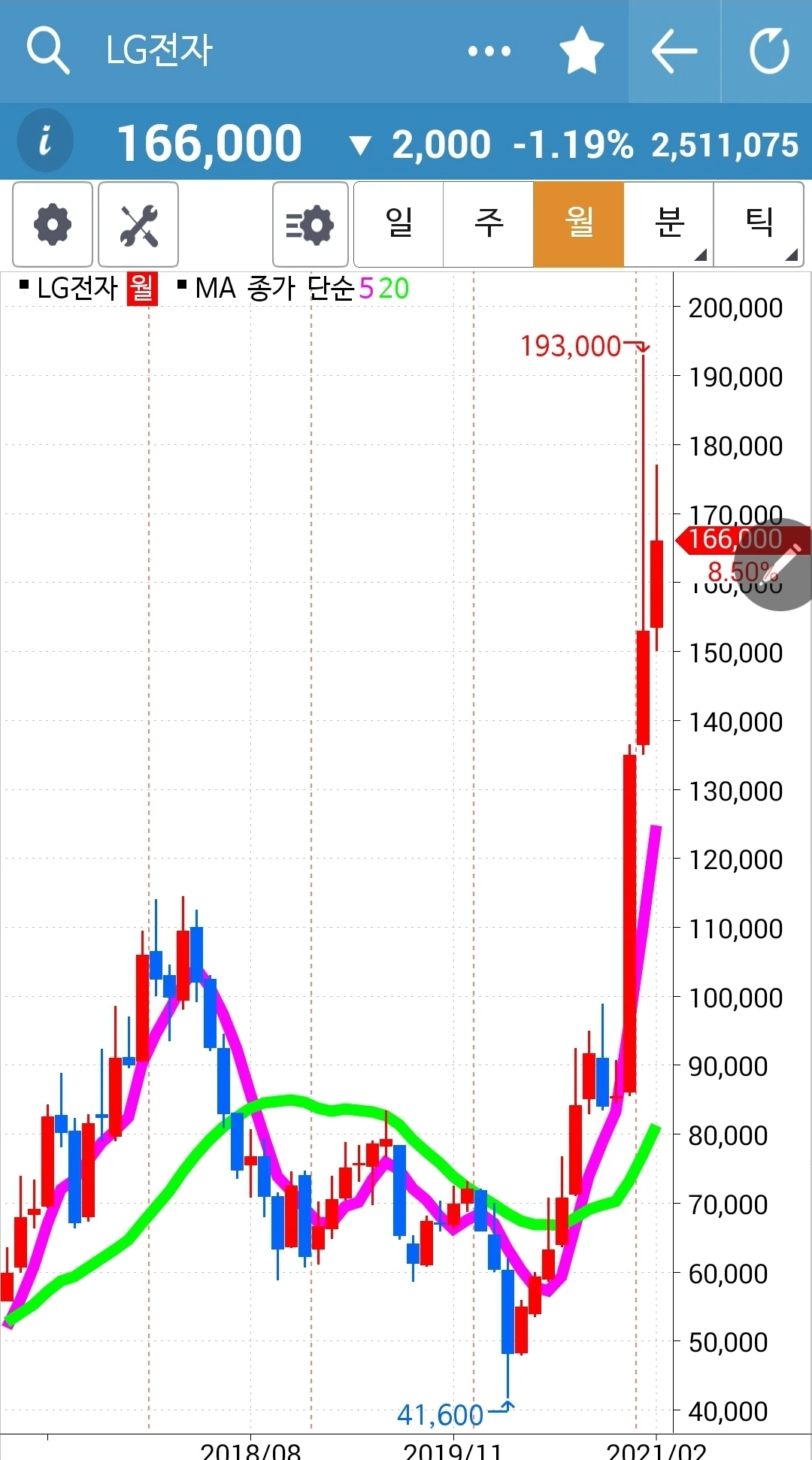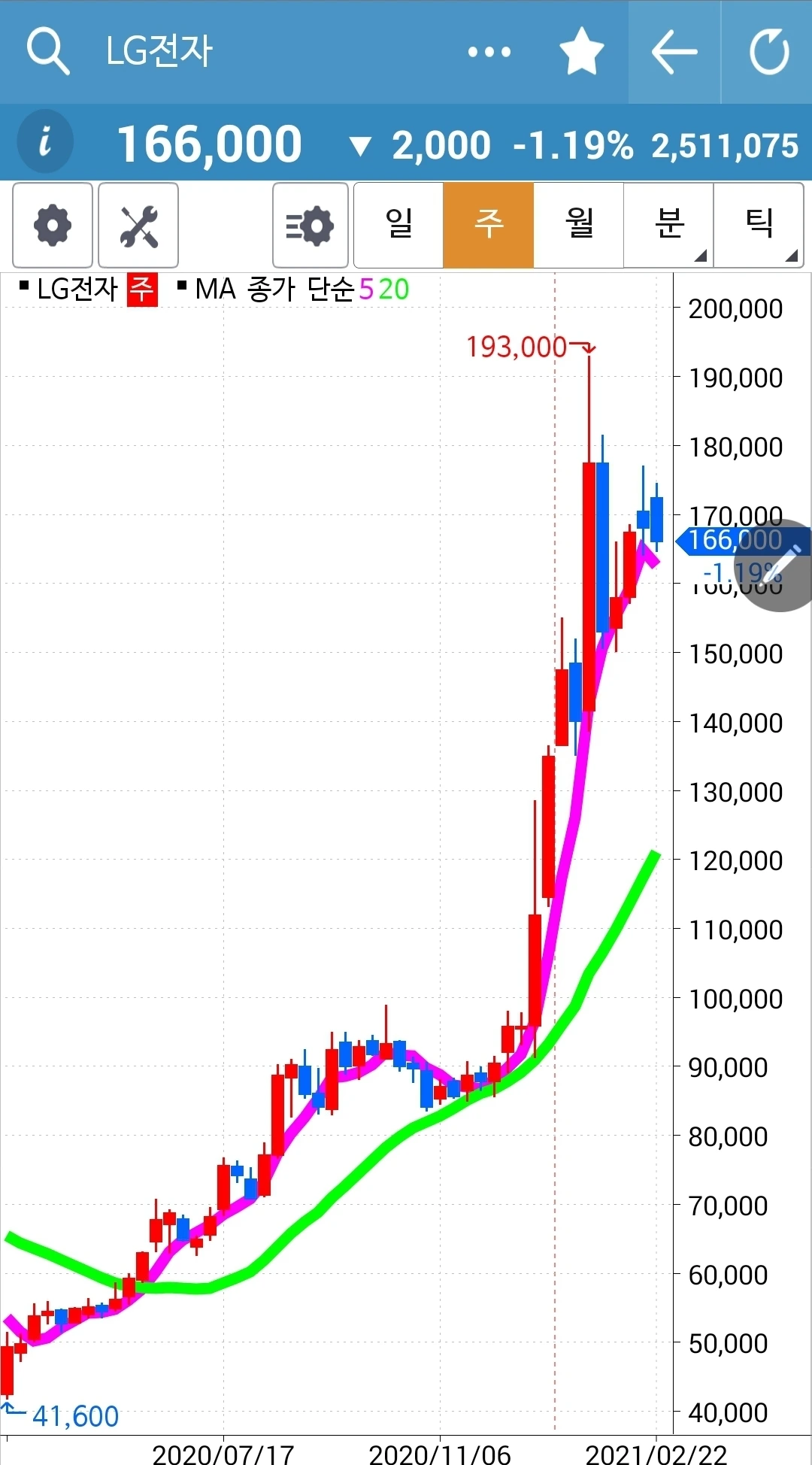 쭉쭉 뻗어나가지 못하고 그대로 고꾸라지려는가. 5일선도 20일선도 아래로 꺽어지려 하고 있다. 주봉에서 5주선도 살짝 아래로 고개를 꺾었다. 긴장하고 조심해야겠다. 그래도 아직은 5일선이 20일선 아래로 내려오지않았기에 난 매수 유지다. 그래. 난 그거 하나는 할 줄 안다. 5일선이 20일선 아래로 내려가면 칼같이 매도하는 거. 난 아무것도 몰라요 5일선이 20일선 아래로 내려오면 매도할 뿐야요~ 파이팅!