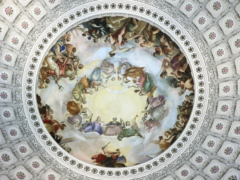 로툰다 천장에는 브루미디가 완성한 프레스코화 워싱턴의 승천 The Apotheosis of Washington 이 있다. 에이브러햄 링컨 대통령이 암살당해 로툰다 홀에 안치됐을 때도 국회의사당의 미켈란젤로라는 브루미디는 자신의 대작 워싱턴의 신격화를 계속 그리고 있었단다.