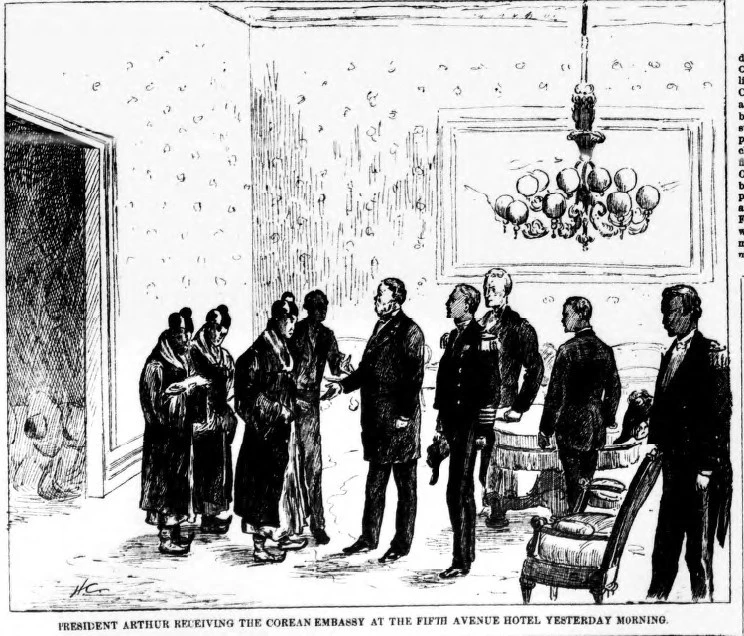 미국 대통령 체스터 아서는 이런 큰 절에 몹시 당황하나 곧 악수와 목례를 나누며 이들을 지극히 대접한다.