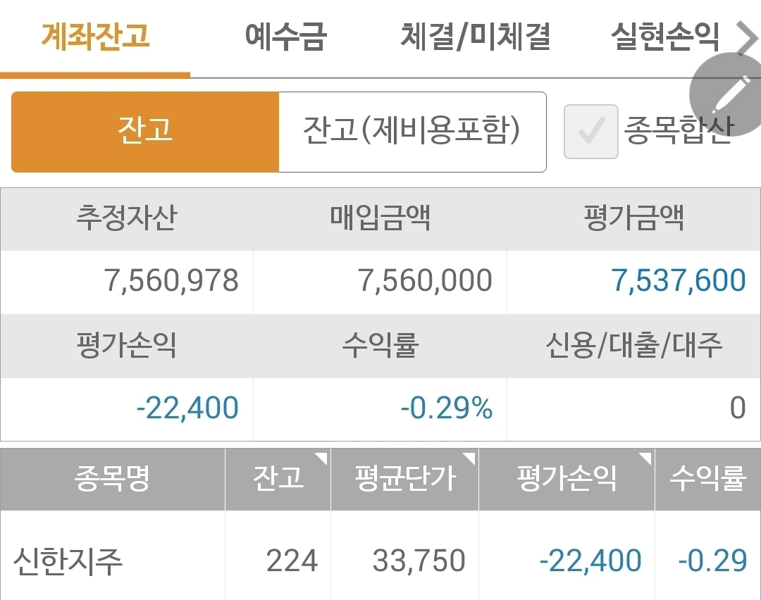 사진 1. 현물 주식. 신한지주가 살짝 올라 나의 수익도 살짝 올랐다. 하하