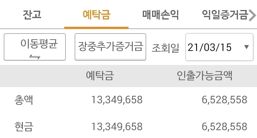 사진 3. 선물주식 예탁금. 최고 수익이었던 1600만 원을 향하여 고우 고우!