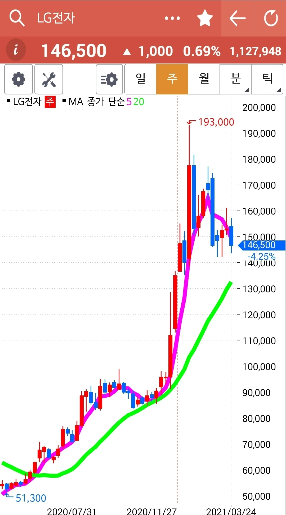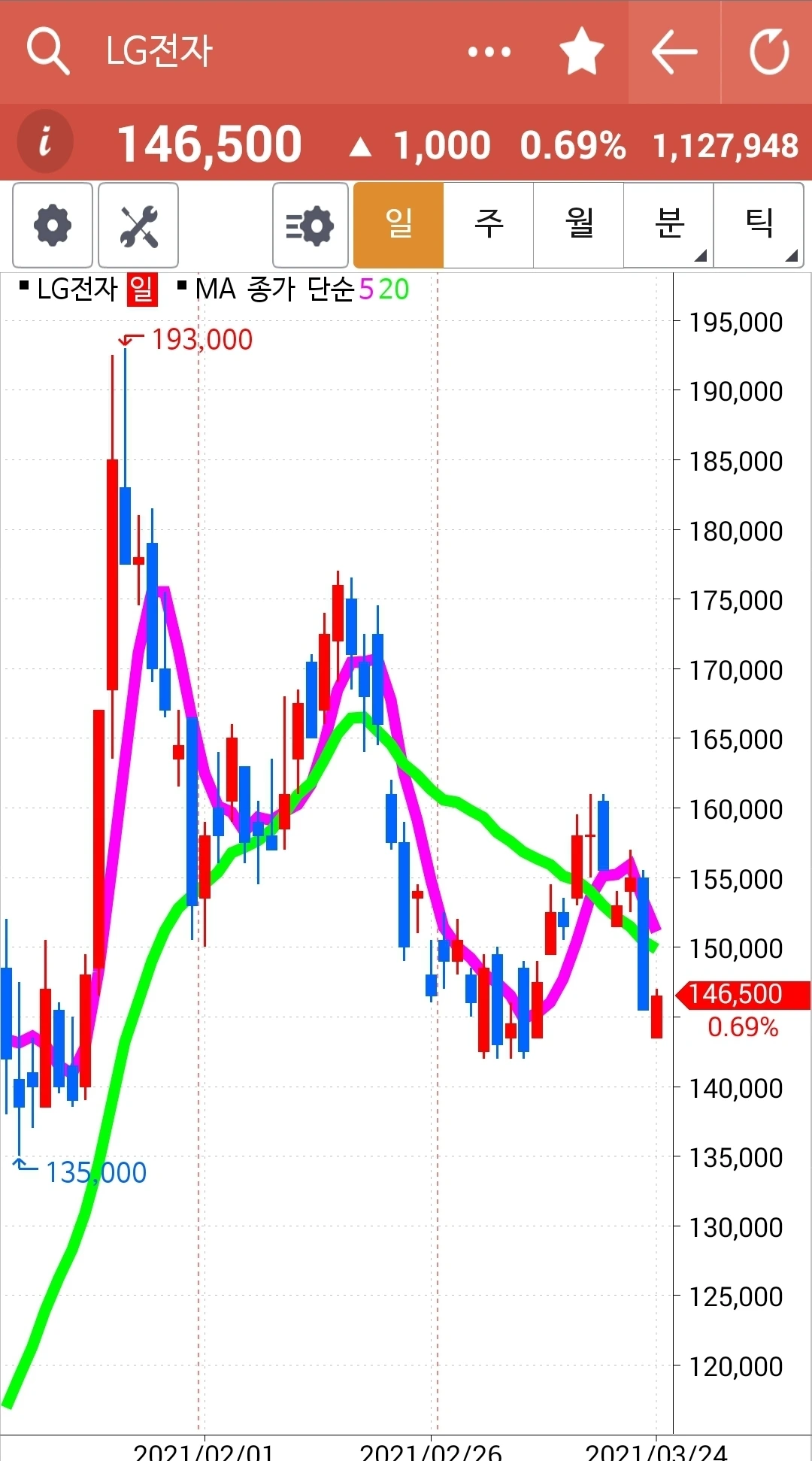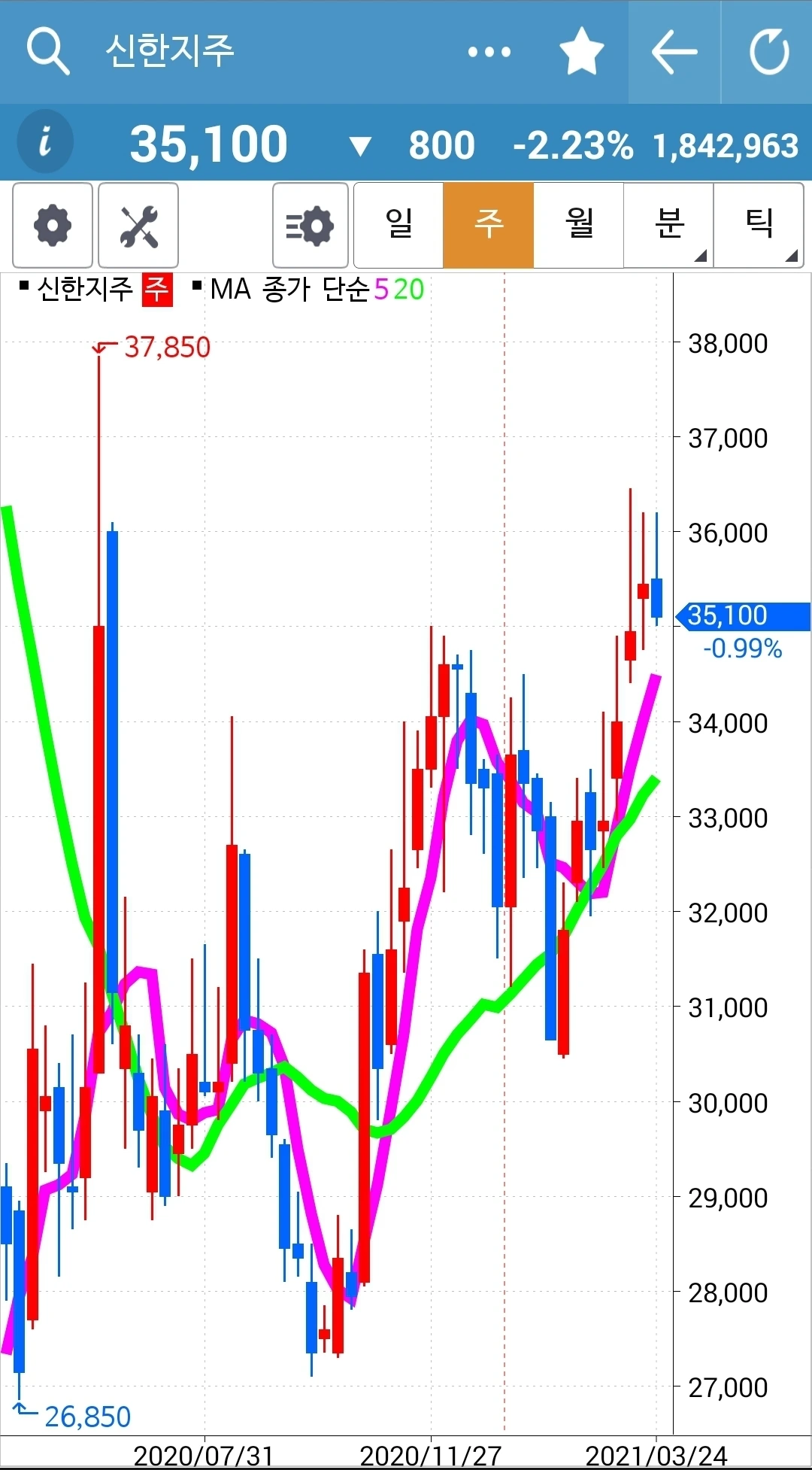 그야말로 기아차 또 뚝!이다. 뚝뚝! 떨어졌다. 하 미치겠다. 주가가 20일선 아래로까지 내려갔다. 물론 5일선은 아직 20일선 위에 있기에 탈락하지 않았지만 위태위태하다. 좀 쉴 줄 알아야 하는데 너무 꽉꽉 채우고 있는 건 아닐까 싶다. 조만간 탈락자가 많이 생길 것 같다.