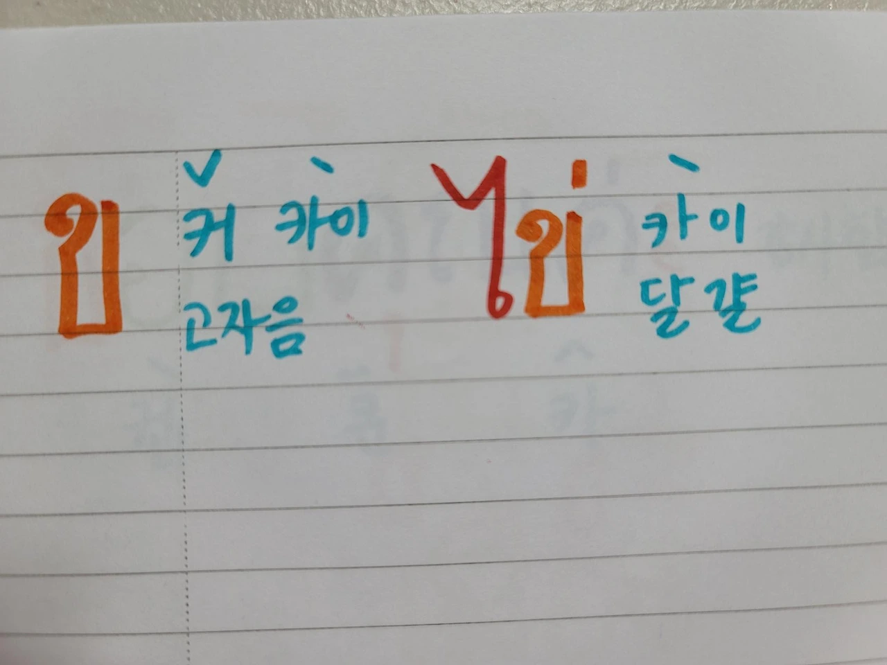 컵쿤을 파헤쳐보리라. 컵쿤은 어떻게 이루어졌나? 우선 초자음이 커카이다. 커카이는 초자음으로 쓰일 때 우리나라 키읔 발음이다. 커카이 할 때 카이는 달걀이다. 그리고 커카이는 고자음이다.