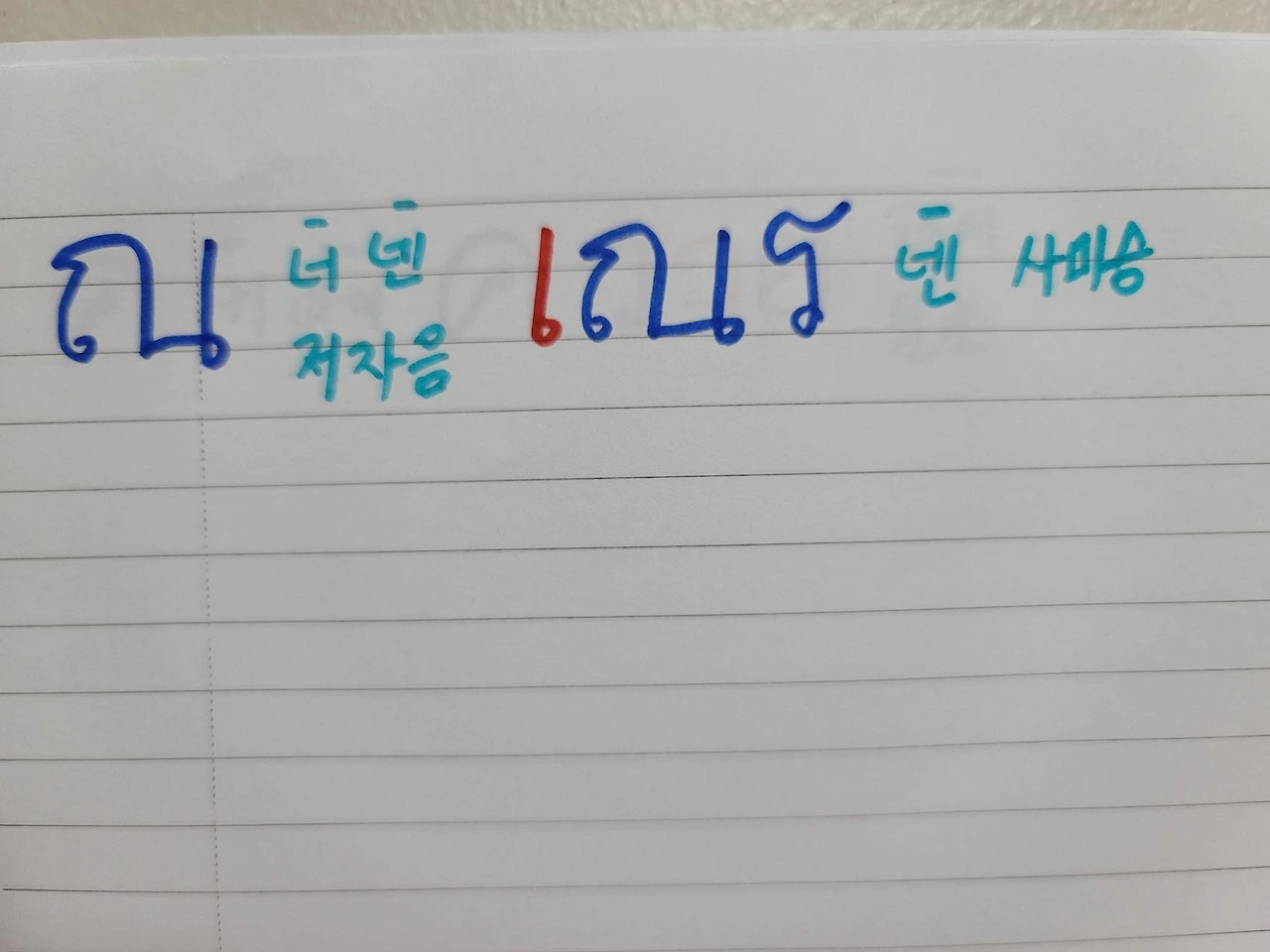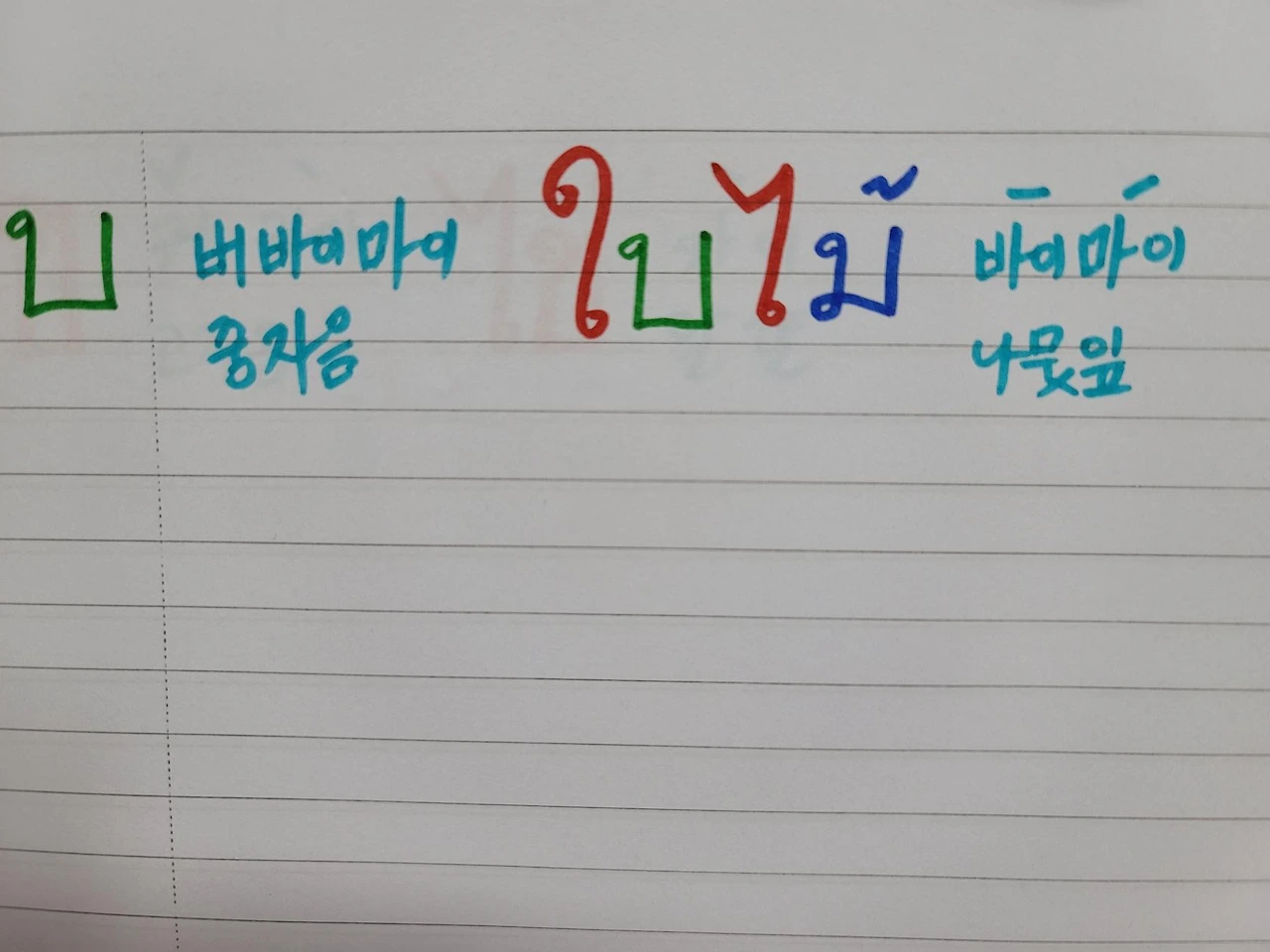 버바이마이다. 요것은 비읍 발음으로 컵쿤에서 컵의 비읍 받침을 만들어준다. 버바이마이는 중자음이고 바이마이는 나뭇잎이다. 그럼 지금까지 걸 합쳐볼까?