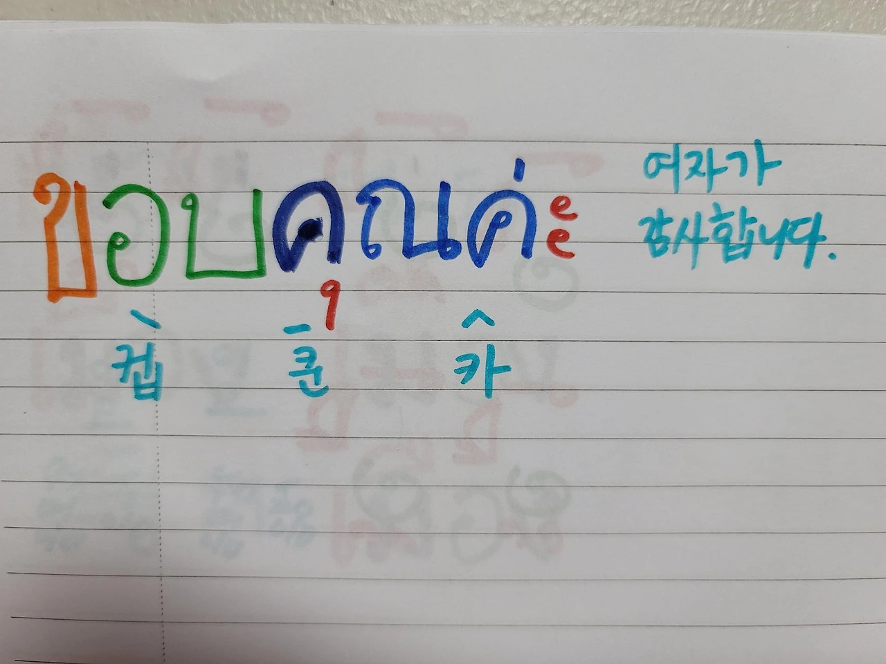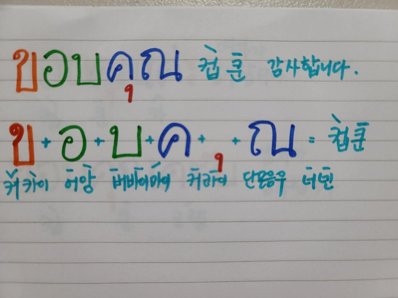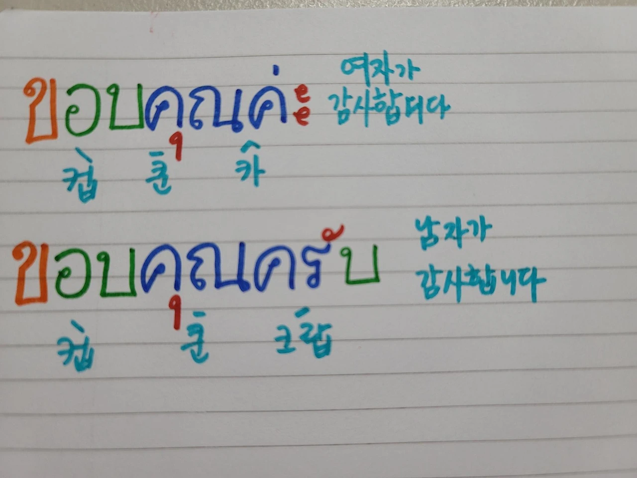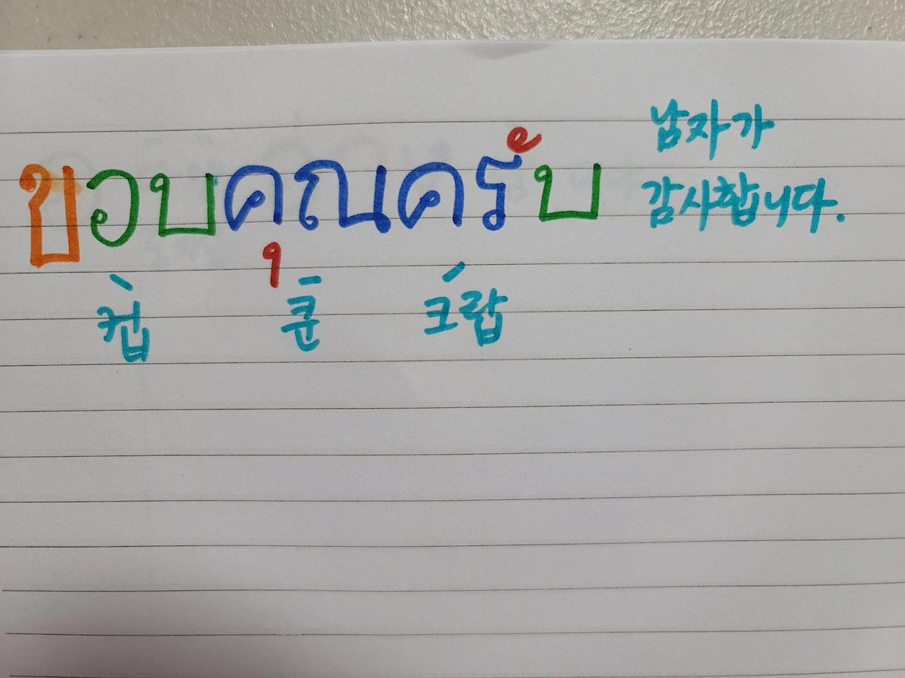 컵쿤카 여자가 말할 때 감사합니다. 컵쿤크랍 남자가 말할 때 감사합니다. 하핫 이렇게 하루하루 문장을 추가해가리라. 파이팅!