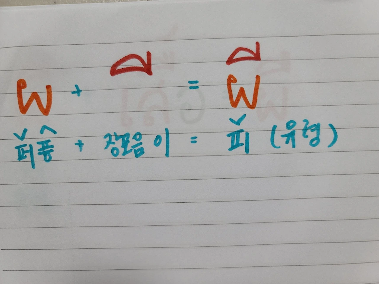 고 자음 퍼픙과 장모음 이가 합쳐져 피 4성 유령이 완성된다. 퍼픙 + 모음 이 = 피 ghost 유령 4성 rising tone