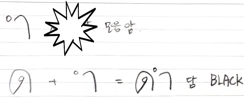 이제 모음 암을 보자. 모음 암은 다른 모음과 다르다. 왜냐하면 그 자체로 종자음 발음을 갖고 있기 때문이다. 모음 암은 마치 모음 아 와 머마가 합해진 것 같다. 새 단어를 보자. 더덱 + 모음 암 = 담 (black) 이것은 언제나 생음엔딩이다. 이 모음은 뒤에 절대로 종자음이 오지 않는다. 그러므로 모음 암 뒤에 오는 것은 반드시 다음 음절의 초자음이다.