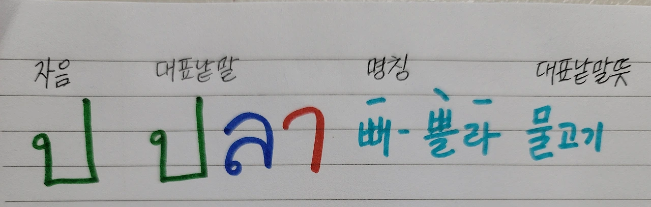 8. 뻐쁠라.이 자음의 명칭은 뻐쁠라. 대표 낱말은 쁠라.쁠라의 뜻은 물고기. 그런데 여기서 이상한 거 하나. 더차다 할 때 차다와 떠빠딱 할 때 빠딱에서는 음절 앞에 있는 자음에 아를 붙여 차다라 발음하고 빠딱이라고 했는데 왜 여기선 빨라가 아니고 쁠라일까?