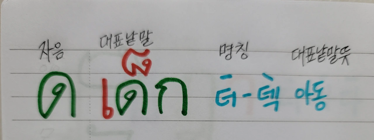 5. 더덱.이 자음의 이름은 더덱. 대표 낱말은 덱. 덱의 뜻은 아동.