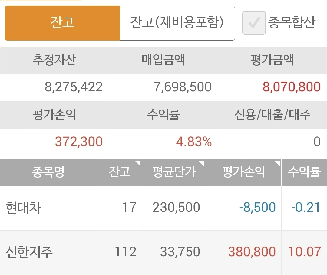 사진 1. 현물 주식. 신한지주 반을 이익 실현하고 새롭게 떠오르는 현대차를 사다.