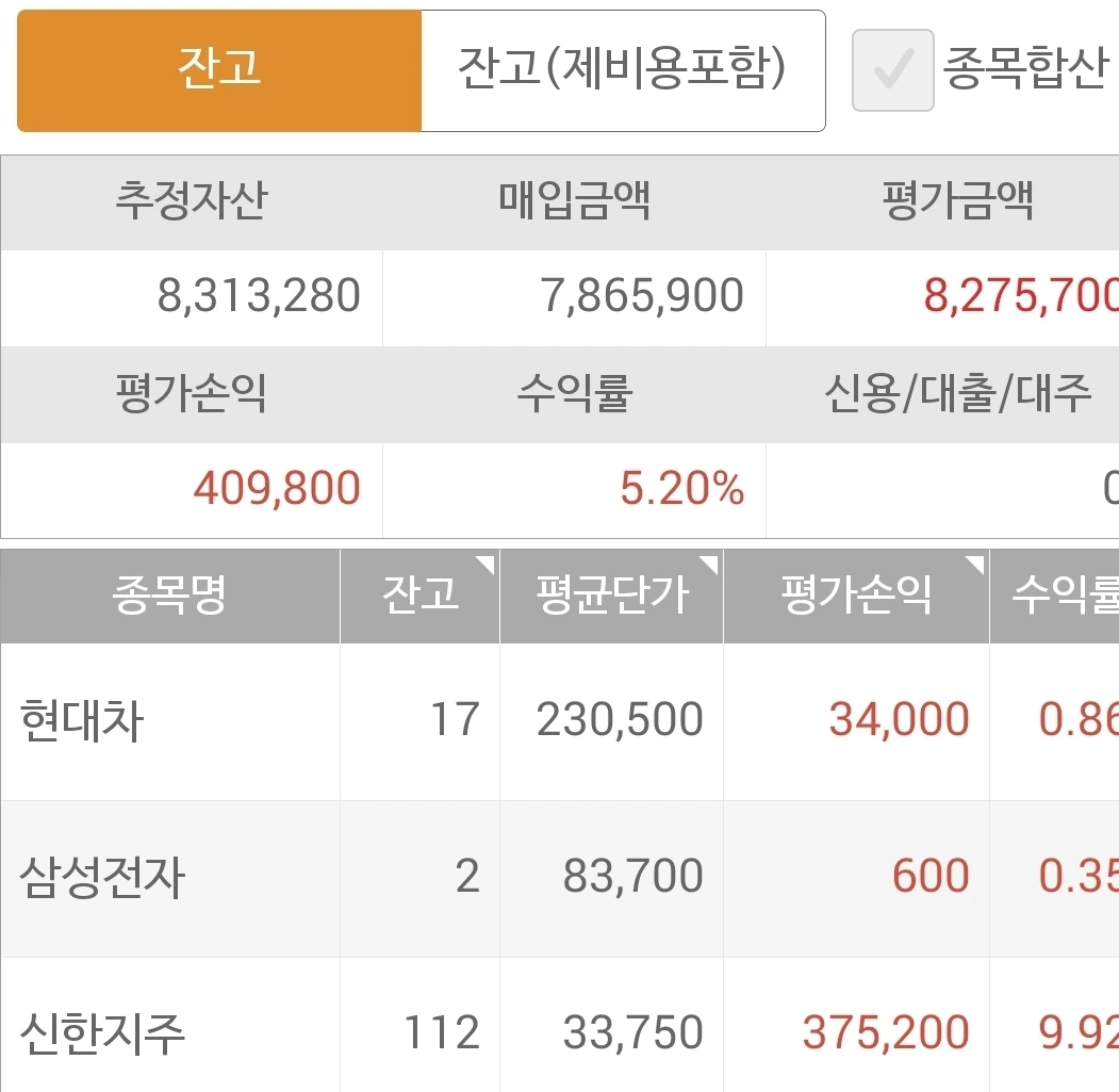 사진 1. 현물 주식. 현대차가 오르고 신한지주가 떨어지고 있다. 하하 인생이 그러하듯 주가도 돌고 돈다.