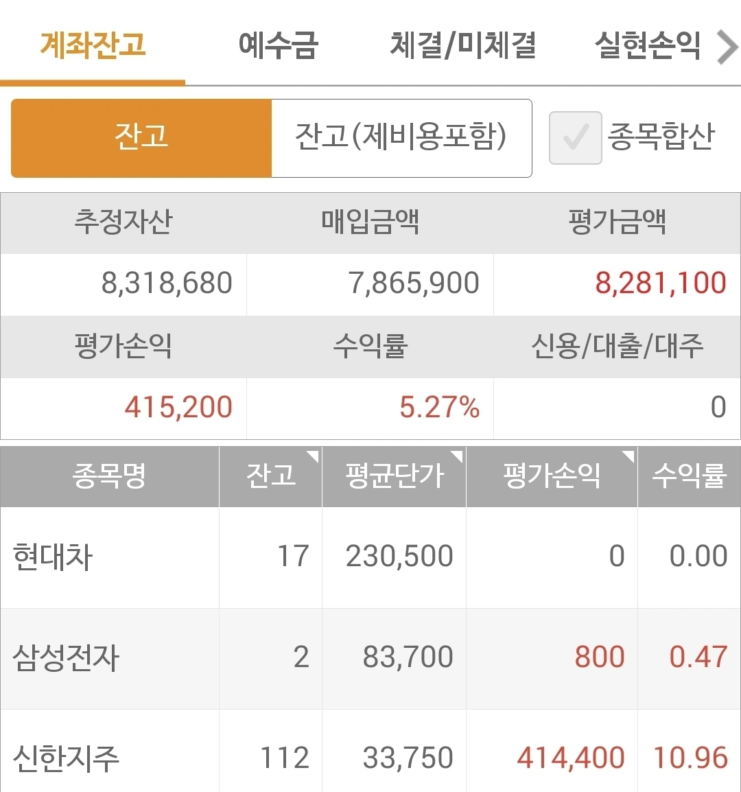 사진 1. 현물 주식. 831만 원. 맨날 고자리에서 맴맴이다. 에구.
