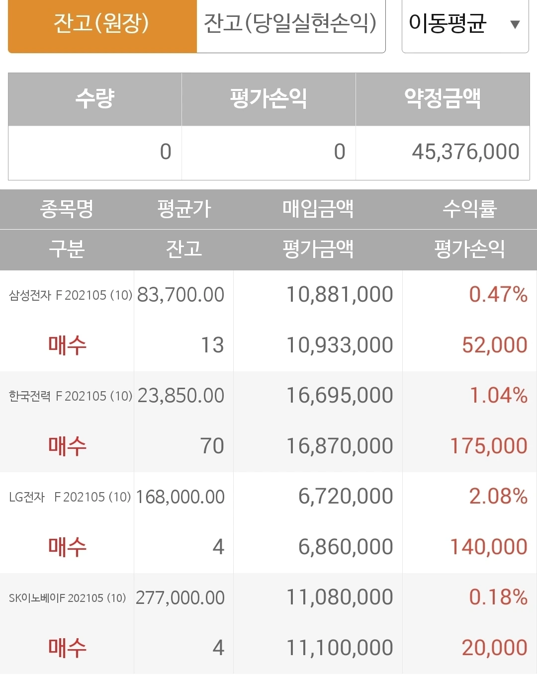 사진 2. 선물 주식. 롯데쇼핑 빠진 자리에 나의 사랑 LG전자를 채워 넣었다.
