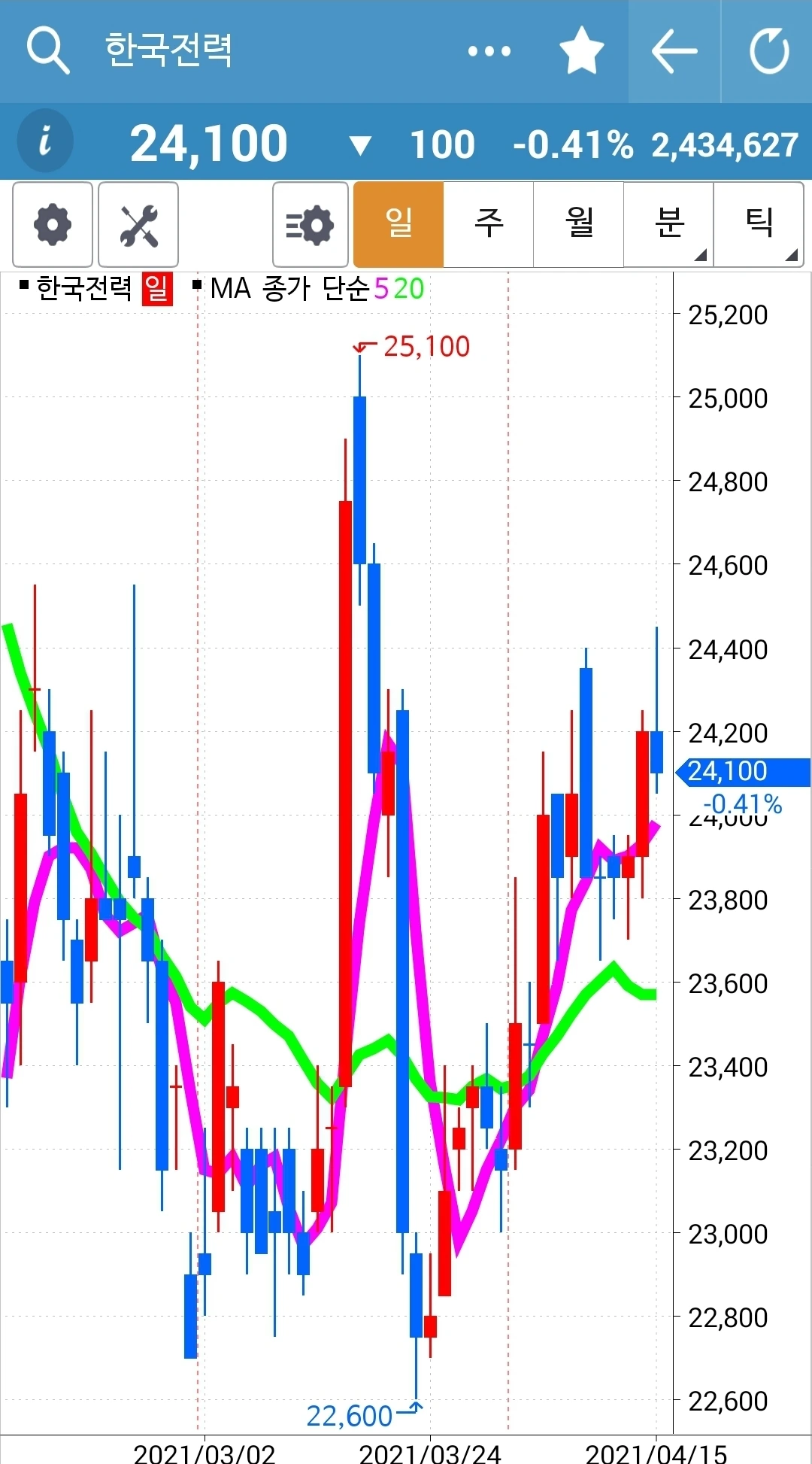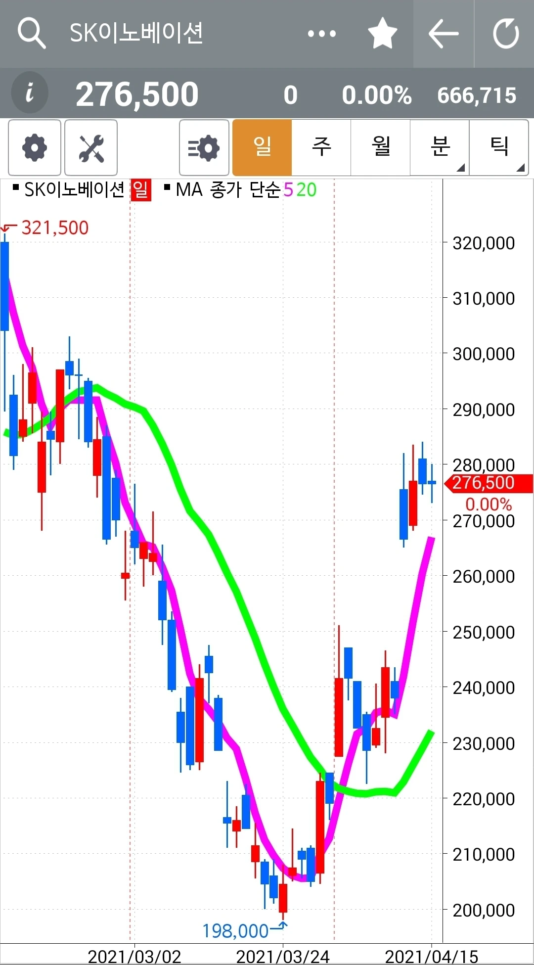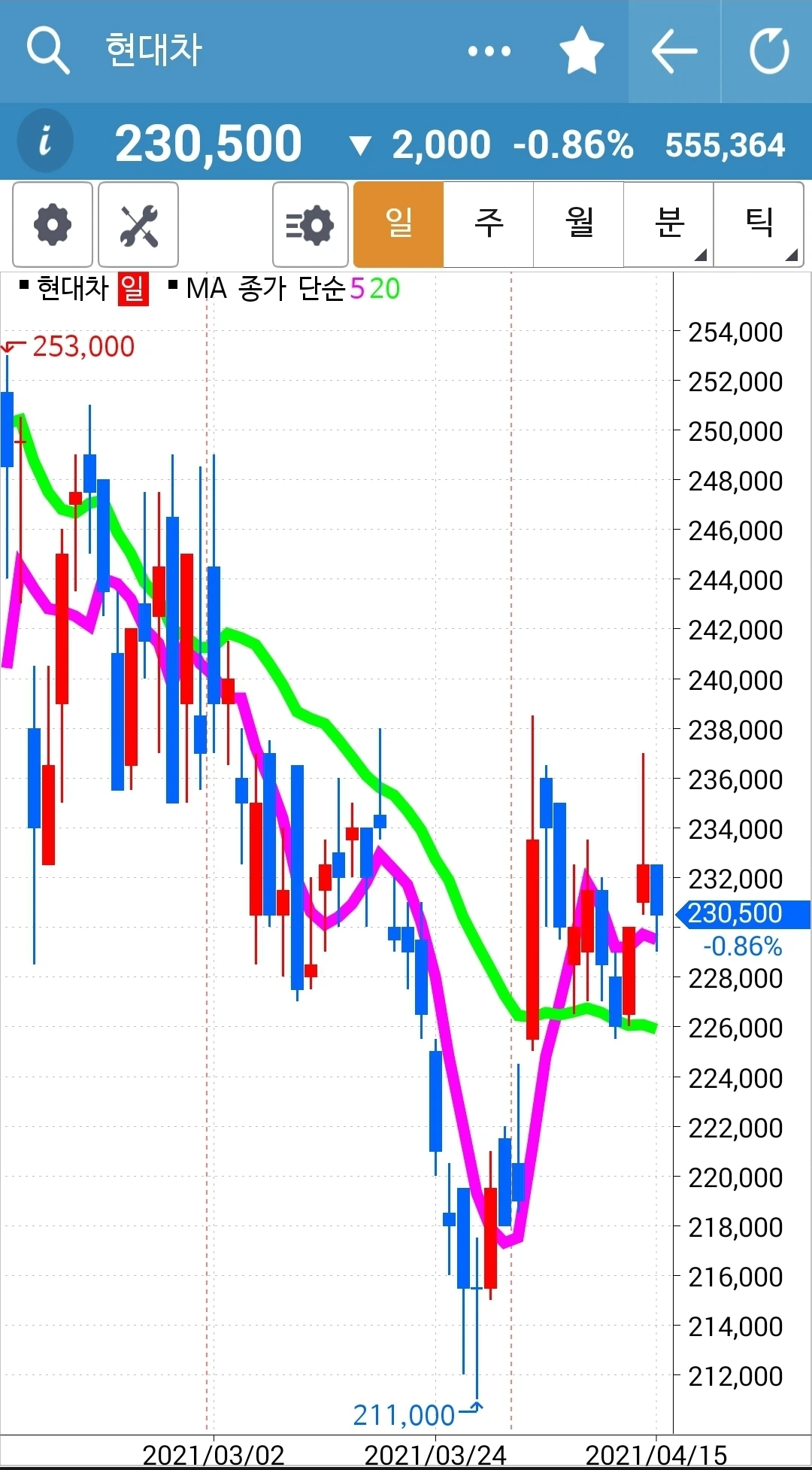 나도 참. 친구 따라 강남 간다고 그것도 뒤늦게 너무한 감이 있으나 그러나 모. 5일선이 20일선 위에 있으니 어쩔껴? 기다릴 밖에. 푸하하하 와이? 난 요거뿐이니까. '난 아무것도 몰라요~ 5일선이 20일선 아래로 가면 매도할 뿐야요~'