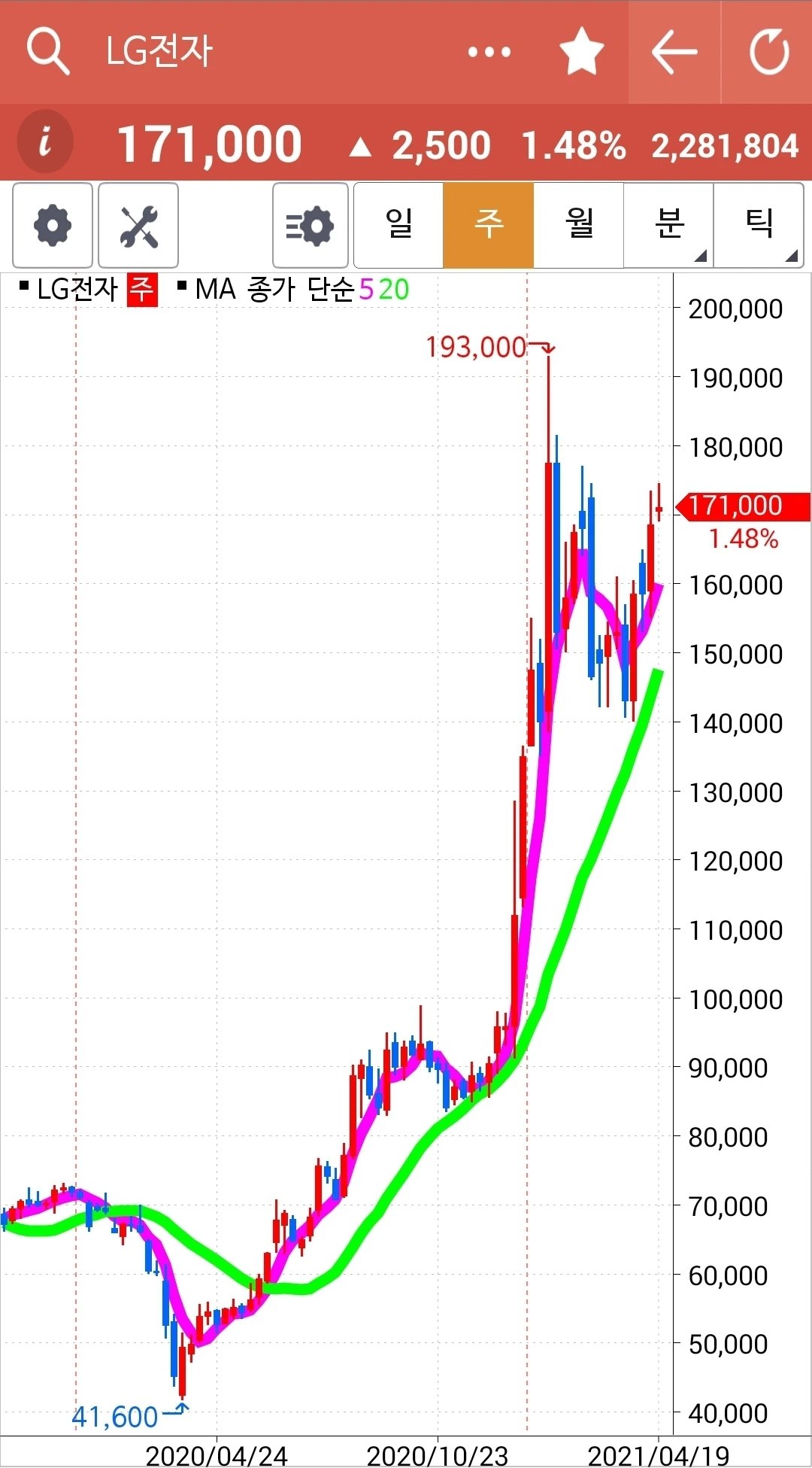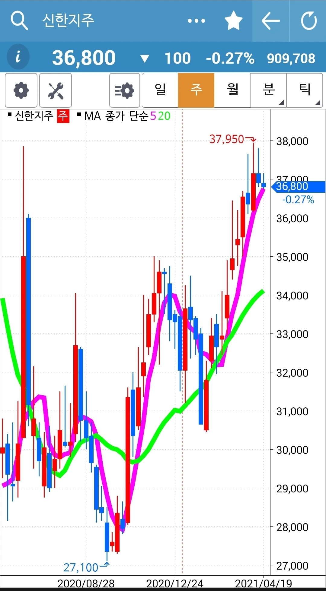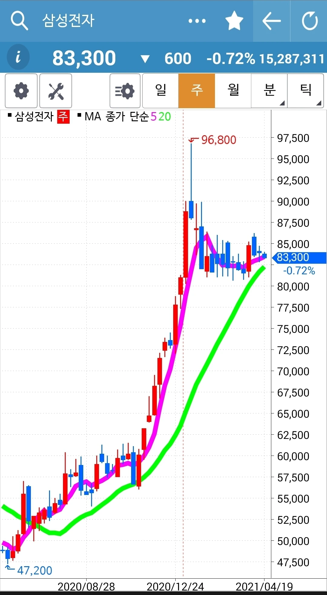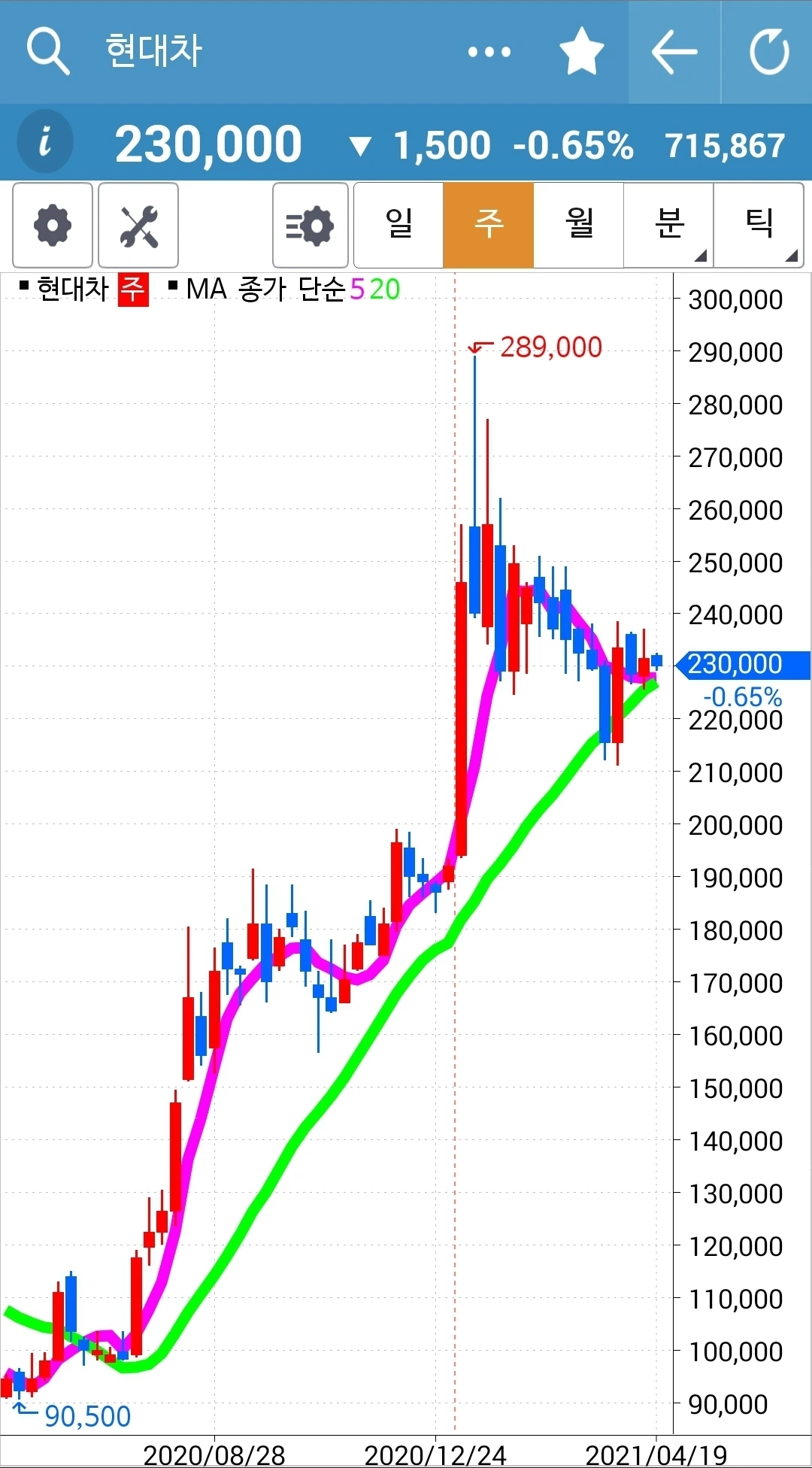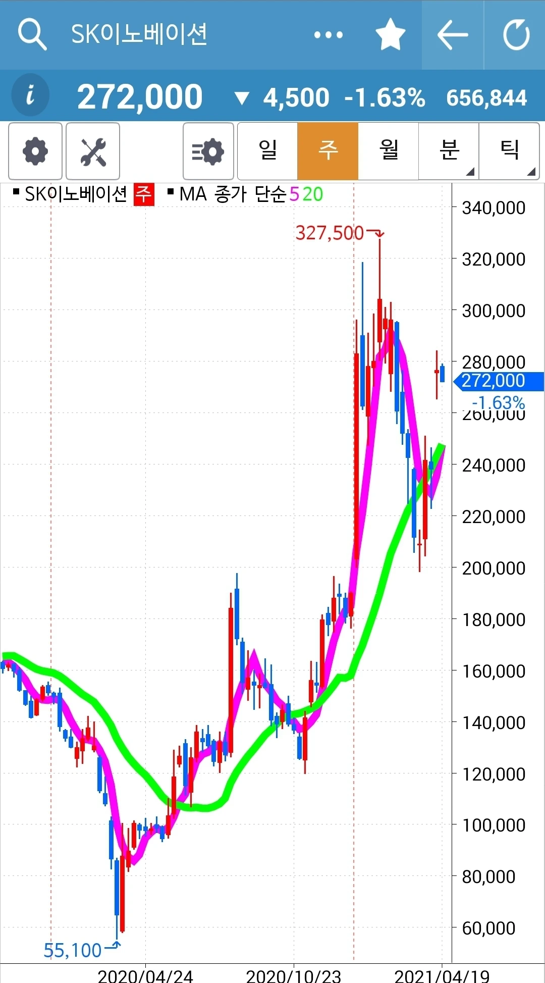 굳이 20일선까지 내려와야만 했을까. 이제 20일 선도 찍었으니 어서 몸을 훽 돌려 위로 빵빵 히 나가거라. 파이팅!