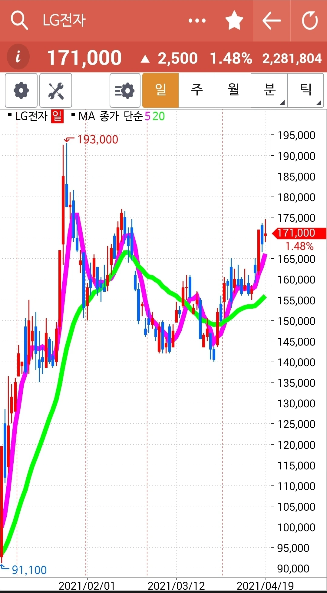 20일선을 찍고 홱 돌아서야 할 텐데. 과연 어떻게 될까. 파이팅!