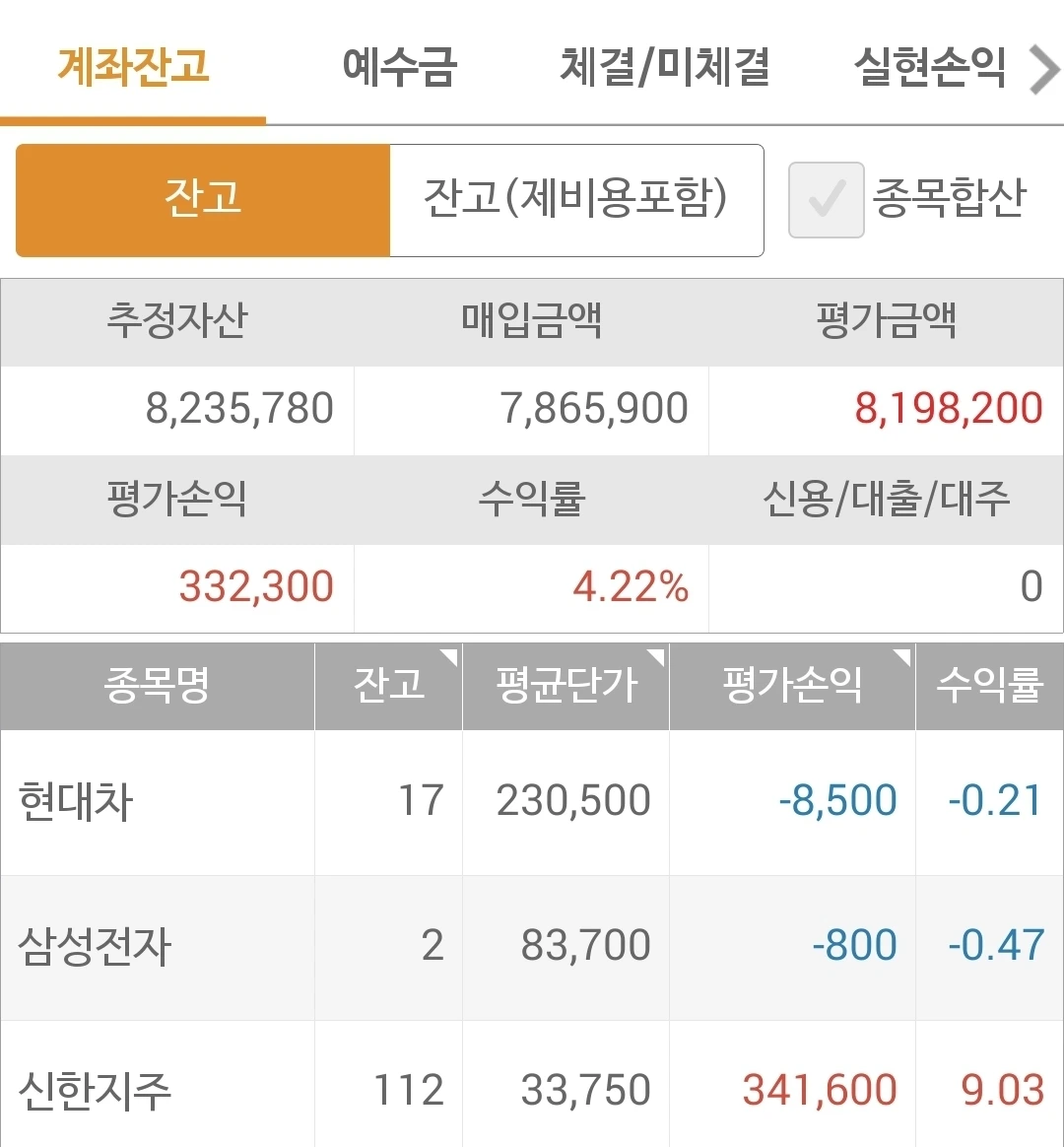 사진 1. 현물 주식. 823만 원. 맨날 고기서 고기.