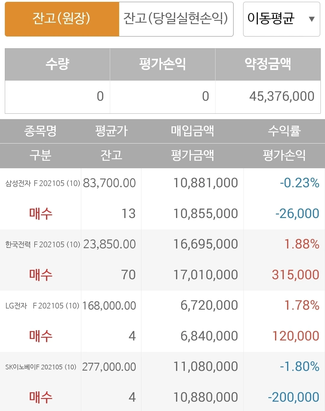 사진 2. 선물 주식. 이 것 역시 뚜렷한 종목 없이 그저 그 모양이다.