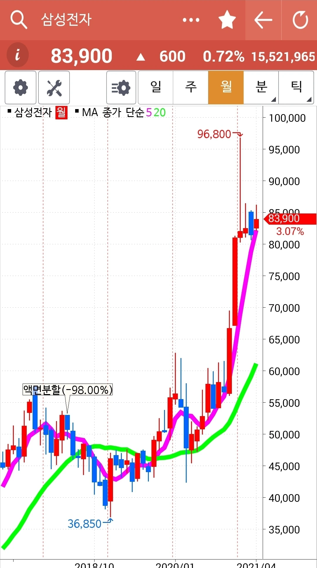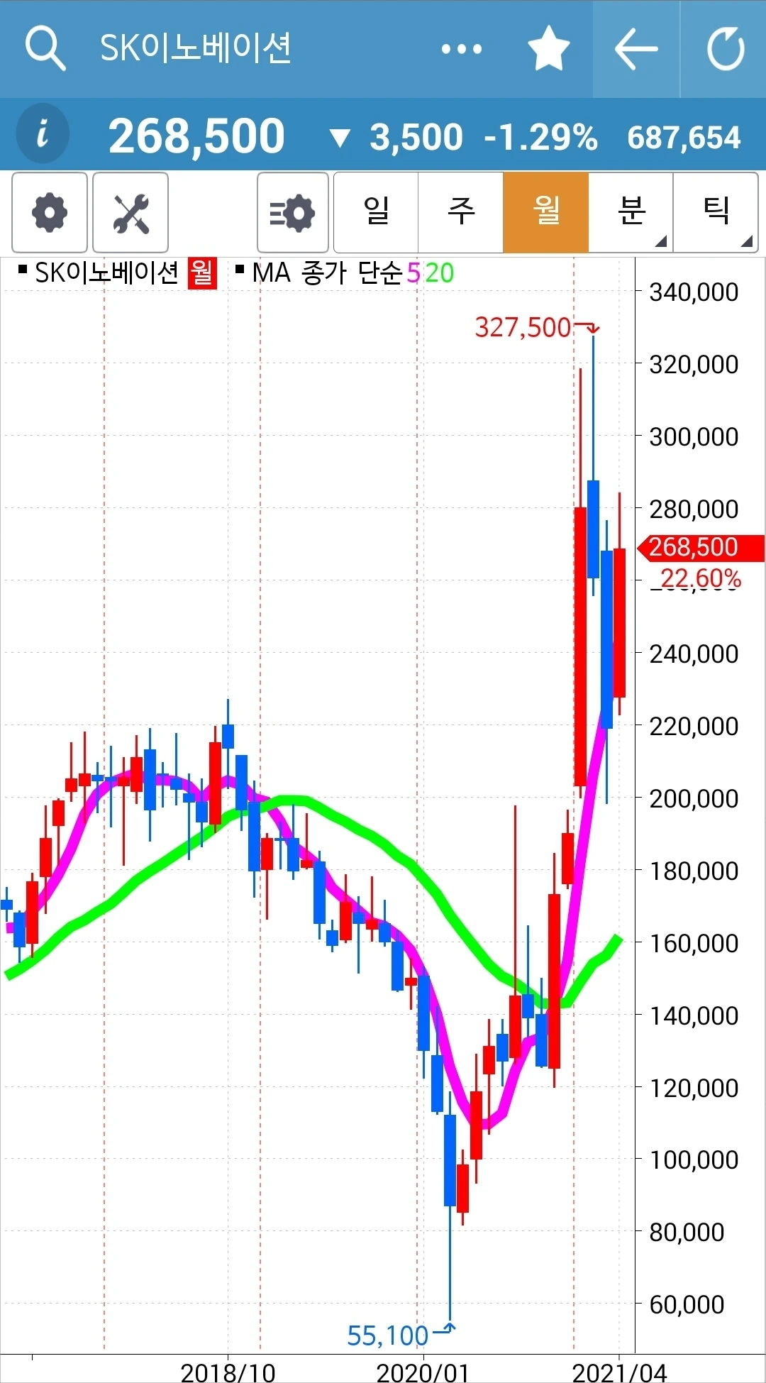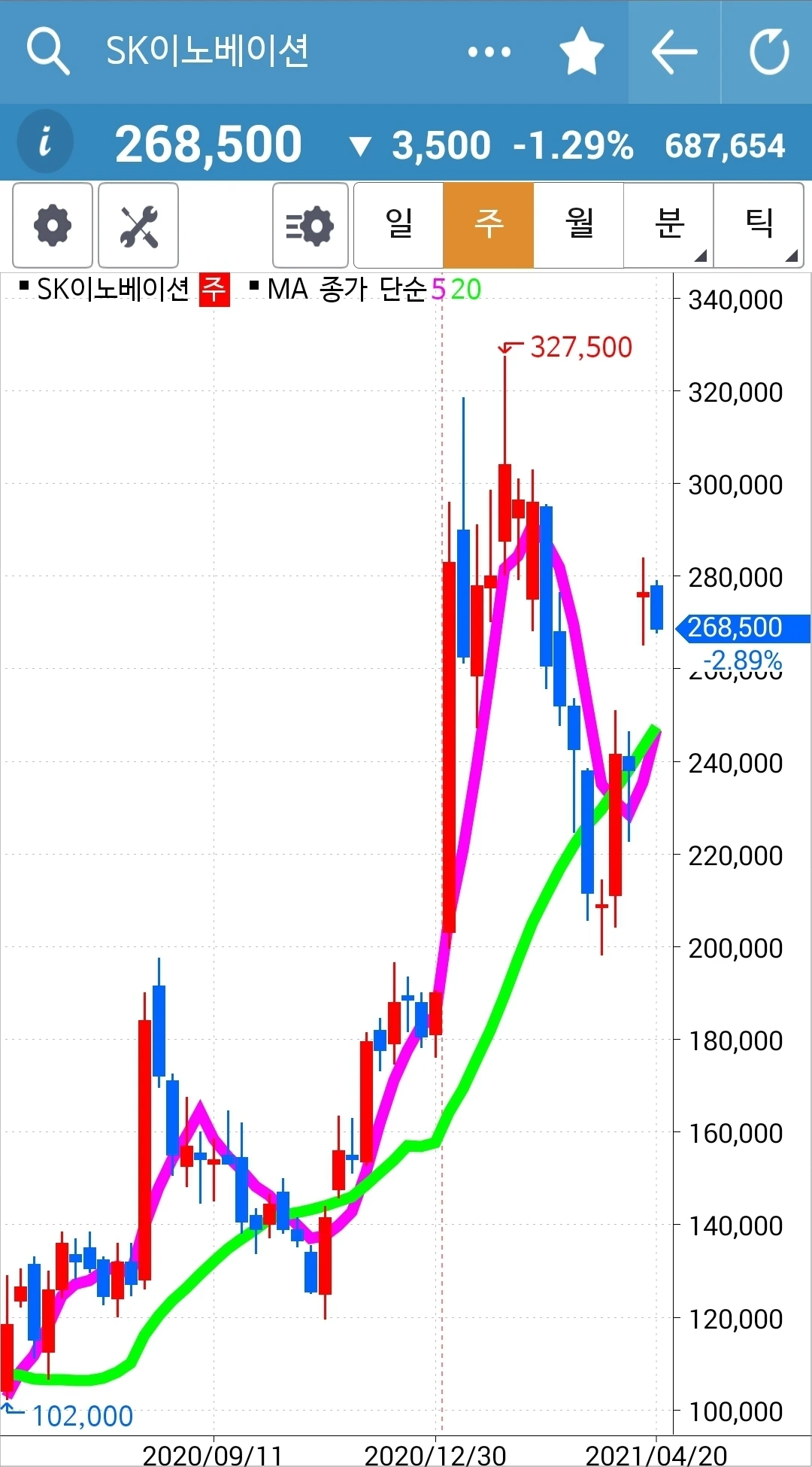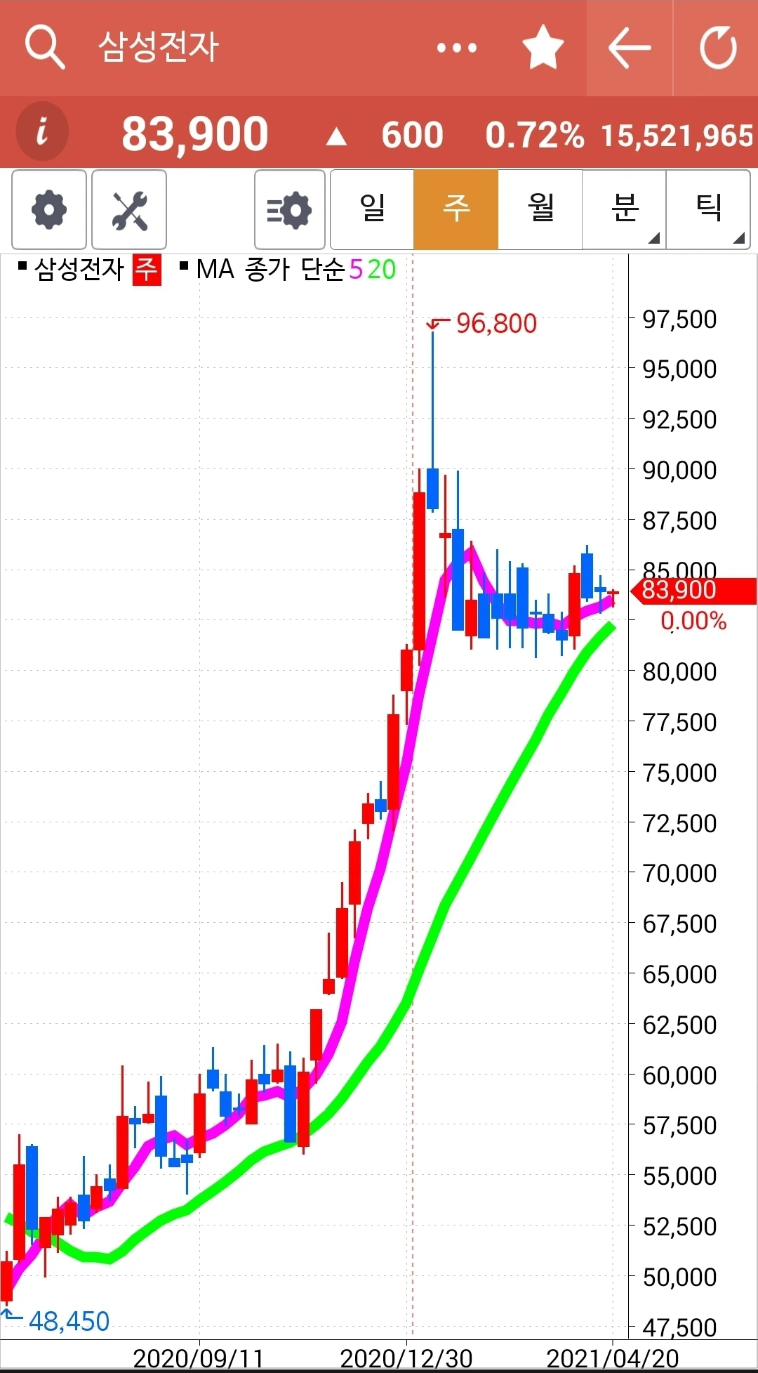 차트가 너무 가파르다. 구불구불 굴곡을 이루며 가야 오래갈 텐데. 그래도 내가 할 수 있는 거란 없다. 5일선이 20일선 위에 있으니까. 차트를 잘 지켜보리라. 파이팅!!!