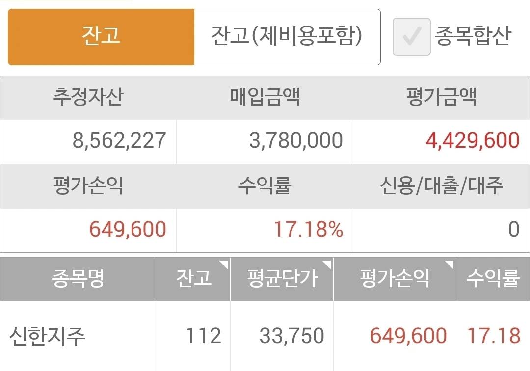 사진 1. 현물 주식. 똘똘한 놈 하나 가지고 있으니 시퍼러둥둥 이 와중에도 수익이 난다. 파이팅!