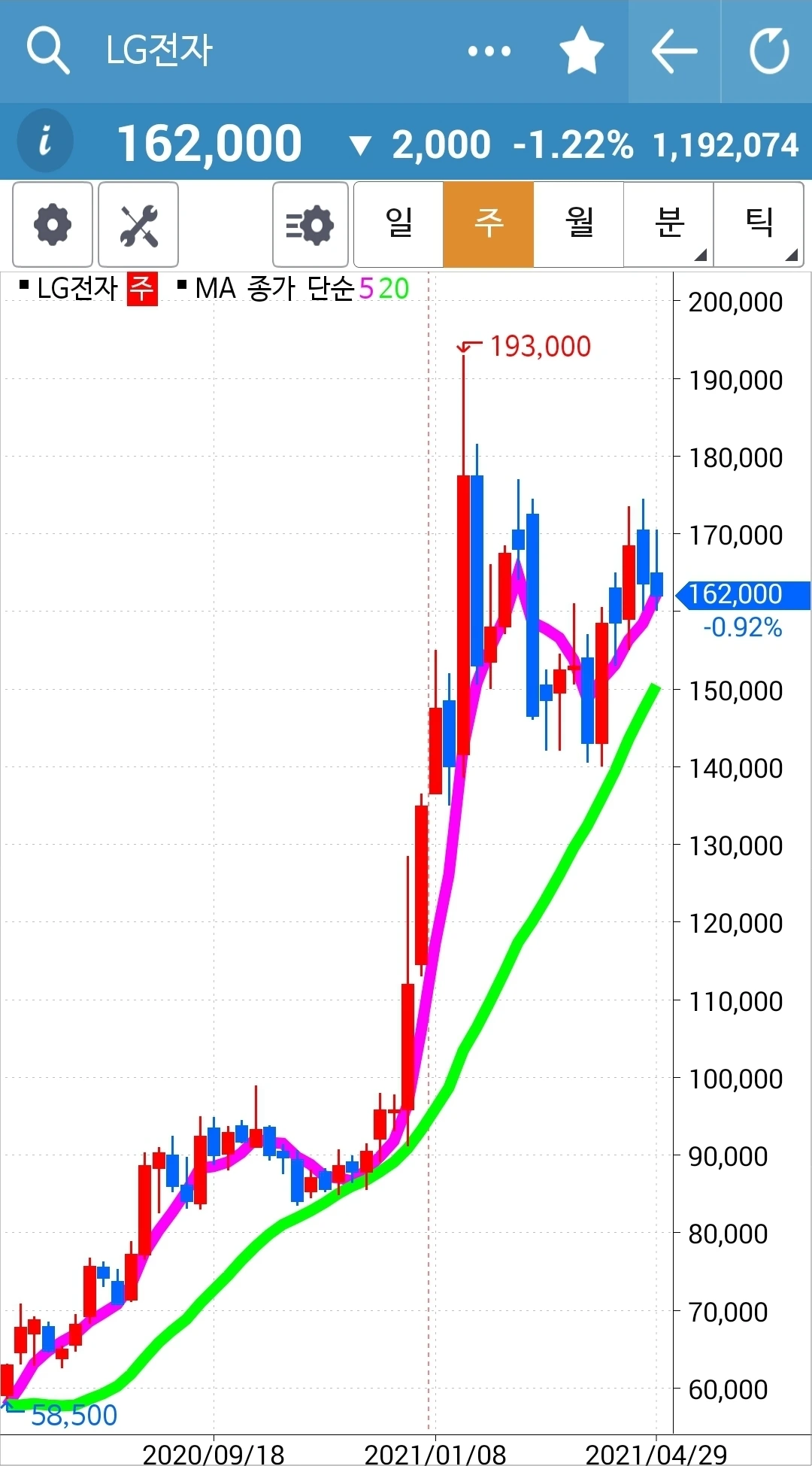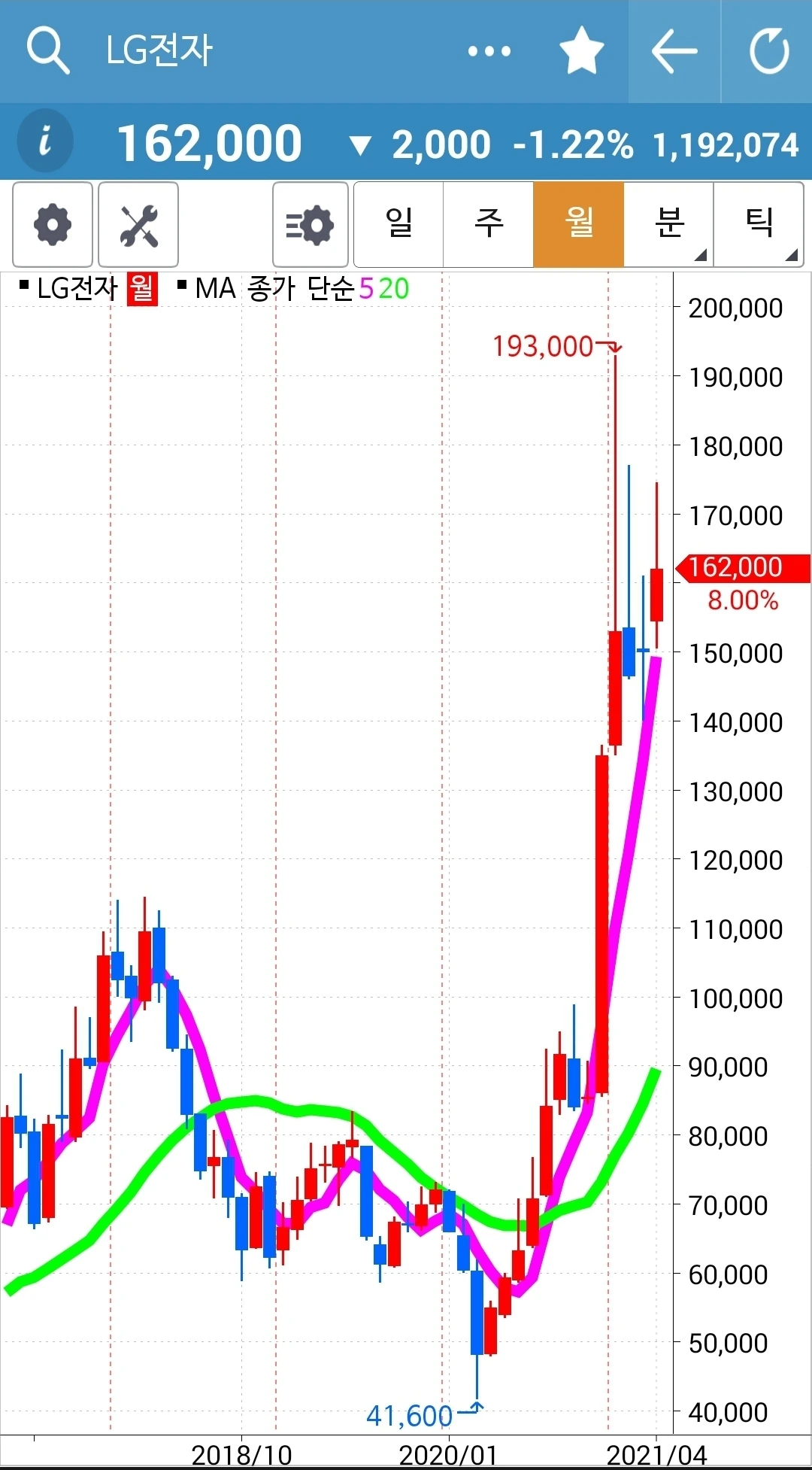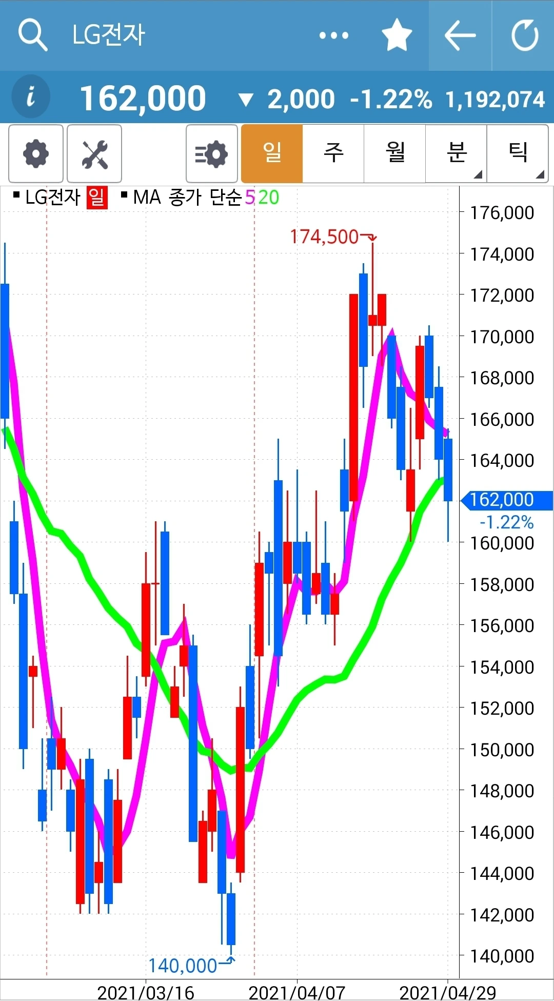 나의 사랑 LG전자. 왜 이렇게 비실비실 맥을 못 추시나요? 세 개째 그것도 기다란 음봉 기록이라니요. 부디 위로 쭉쭉빵빵! 우상향으로 가시오소서. 파이팅!!!
